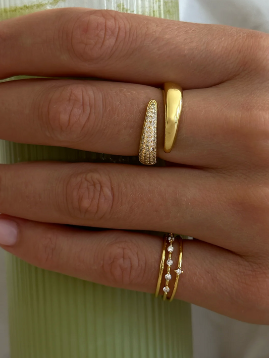 Adjustable Duo Zirconia Ring Gold