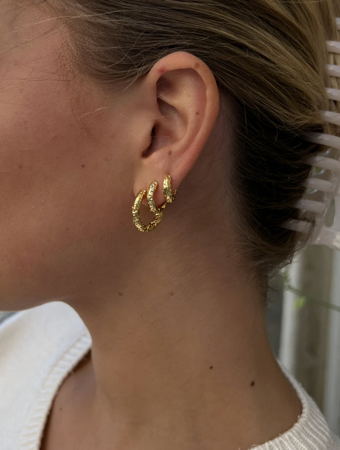 Our 3-Pack Textured Hoops are classic and timeless but with a unique twist. Each hoop in the set features a textured surface. Perfect set that matches to any outfit or occasion.
