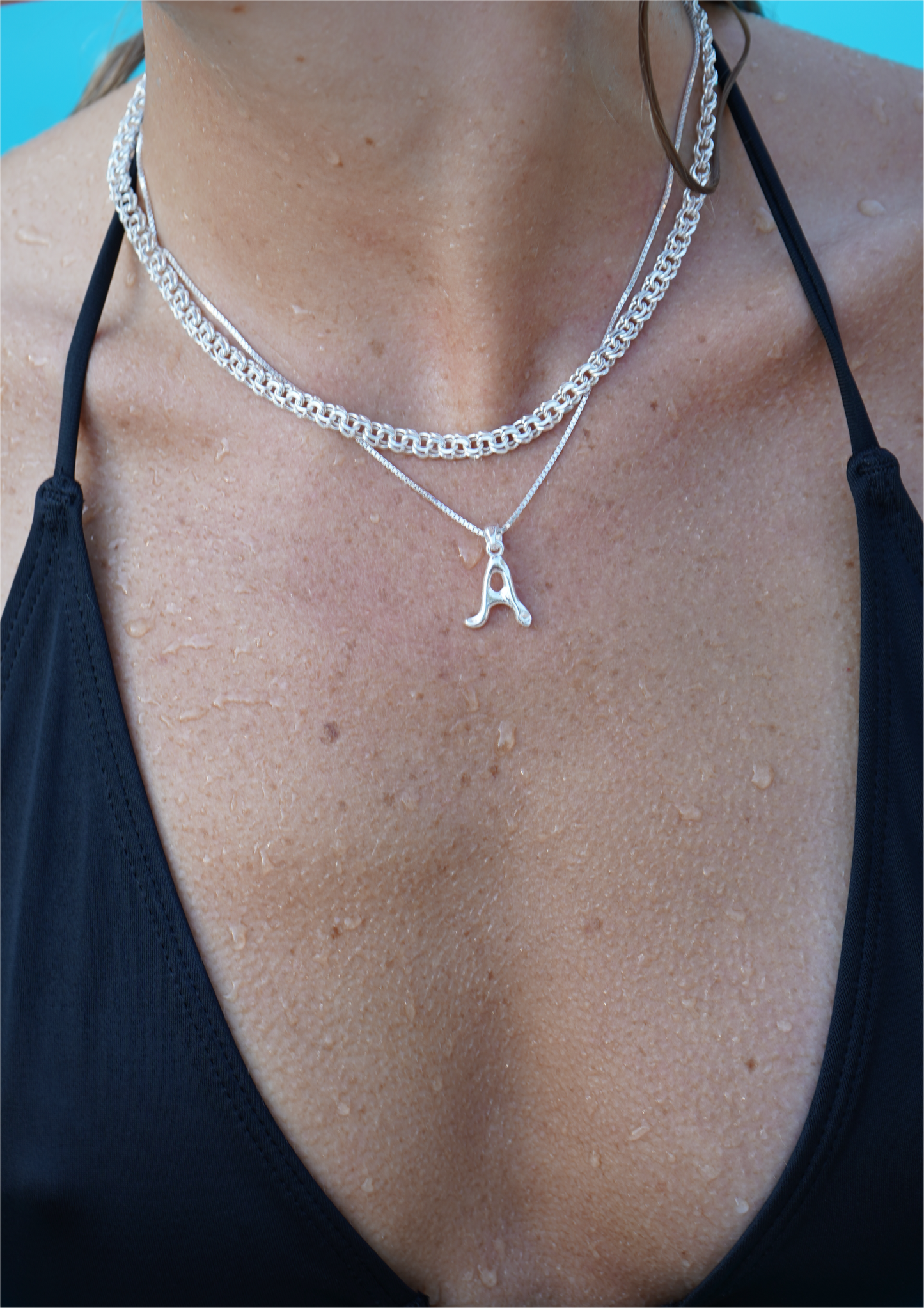 Our Silver Bismarck Necklace is timeless, unisex and unique. Pick your letter and make it a personal piece, perfect as a gift for both men and women. Women's size are usually around 43 cm and men's sizes are usually around 48 cm. This necklace is available in gold and similar styles here.