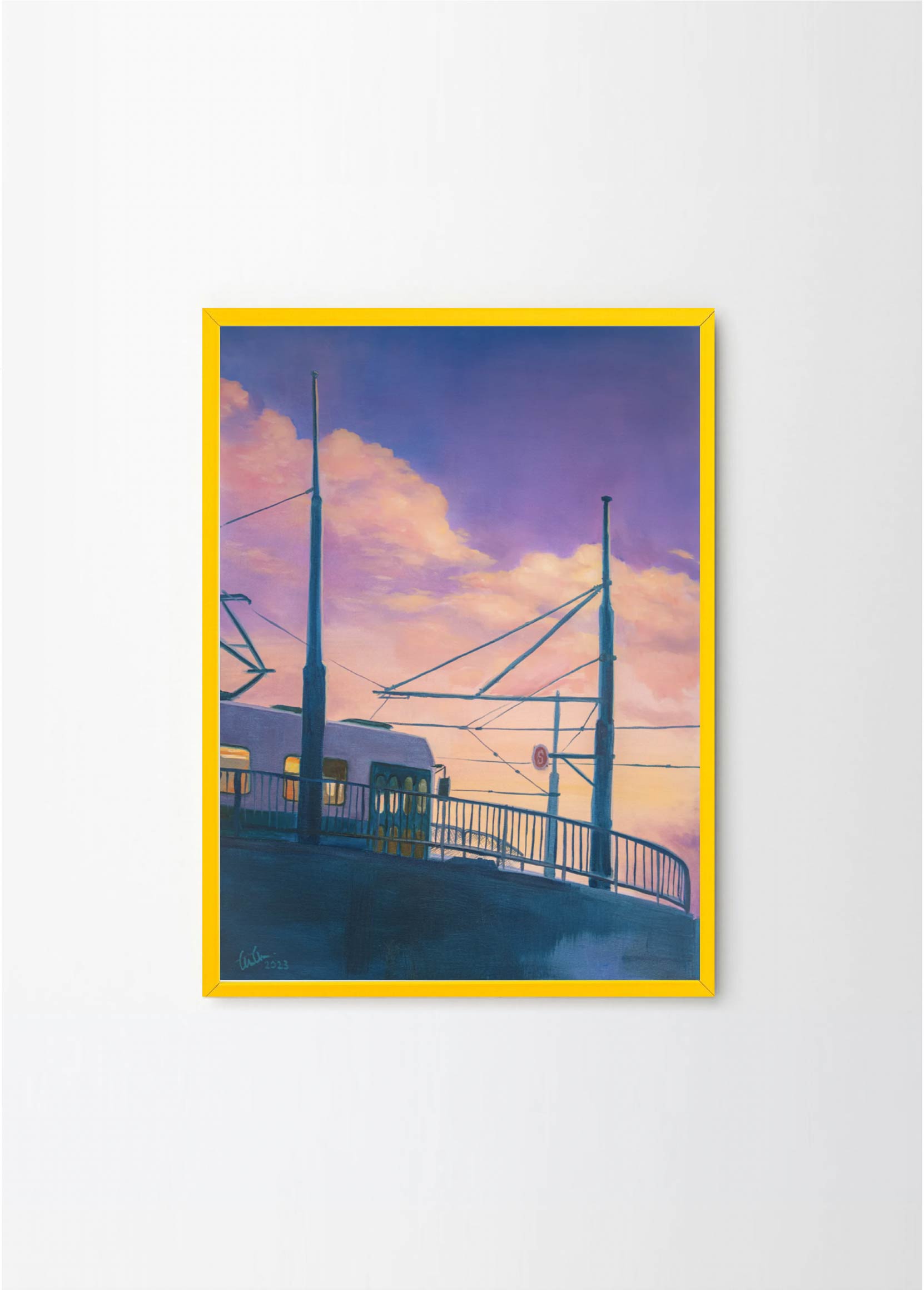 The trams, symbolic of the city's collective experience, foster a sense of community as they carry passengers from one destination to another. They become the backdrop for everyday stories and interactions. Her paintings serve as gentle reminders to cherish the connections we make and the places we inhabit. In her own quiet way, Elin encourages us to find beauty in the simplicity of everyday life.