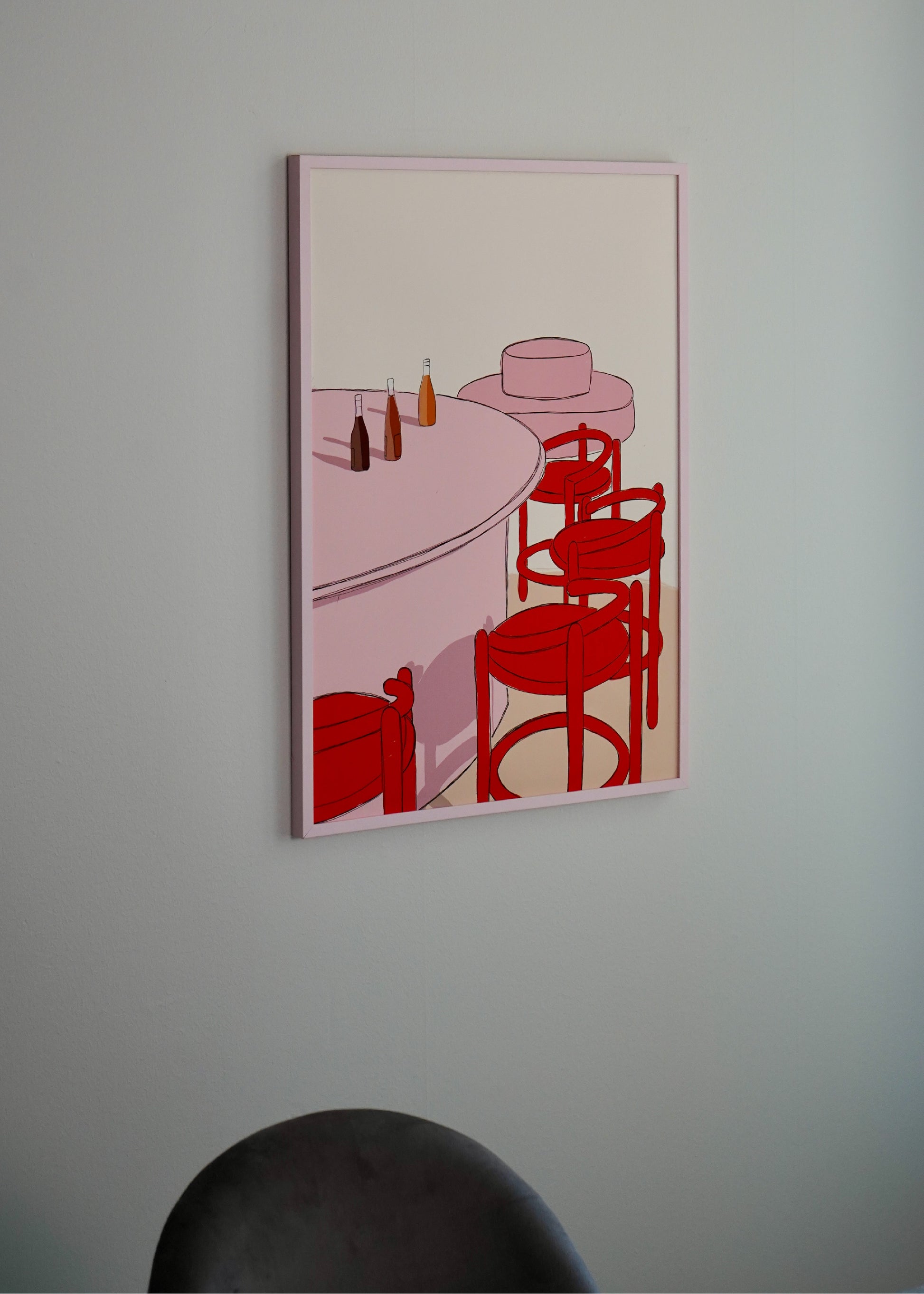 Our are made of colored pine wood. The frame width is 12 mm and 20mm deep. The frame is delivered with a 1,5mm thick plexiglass. The back of the frame is held in place with twist clips, which makes installation quick and easy. Hanger for both portrait and landscape.