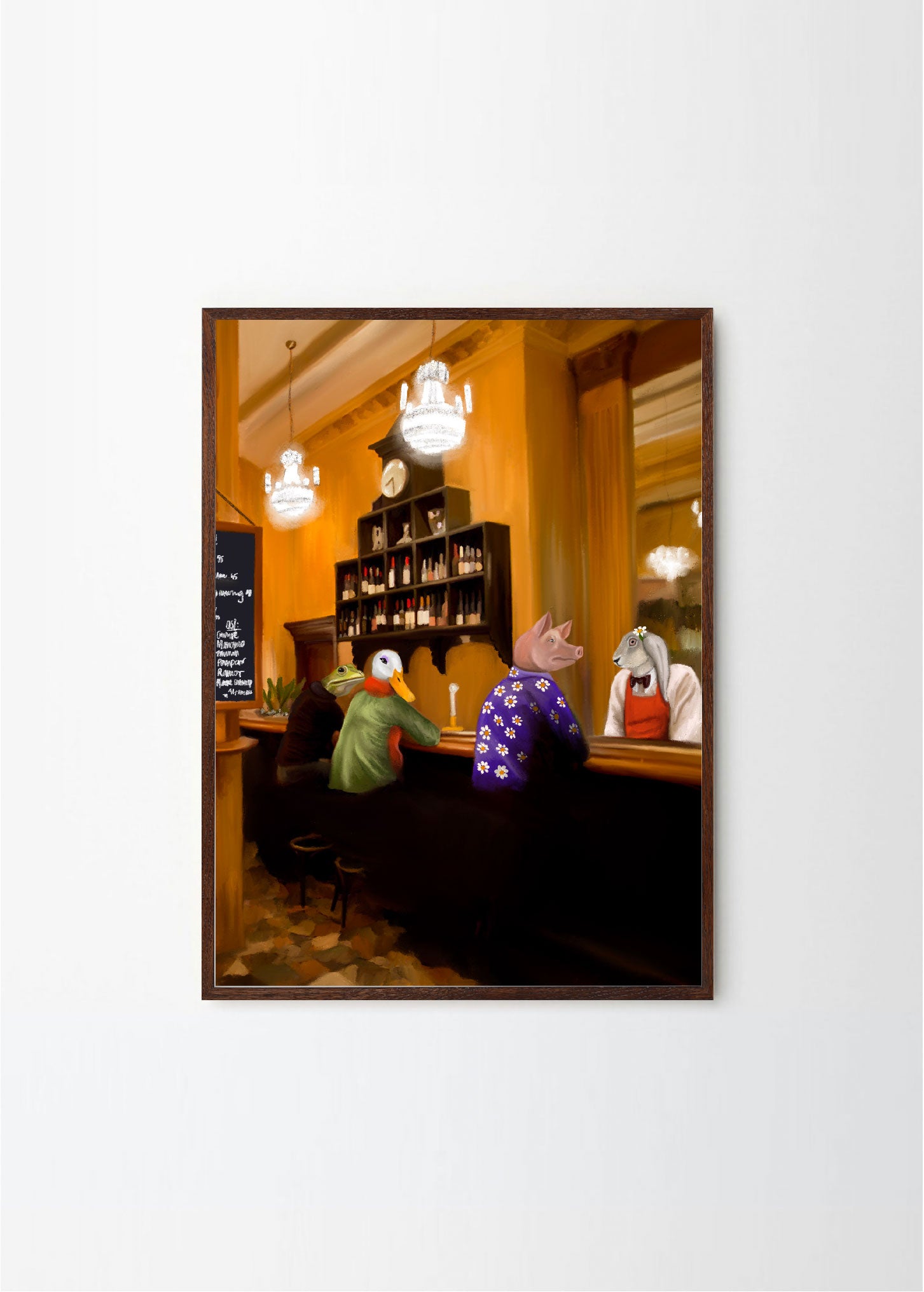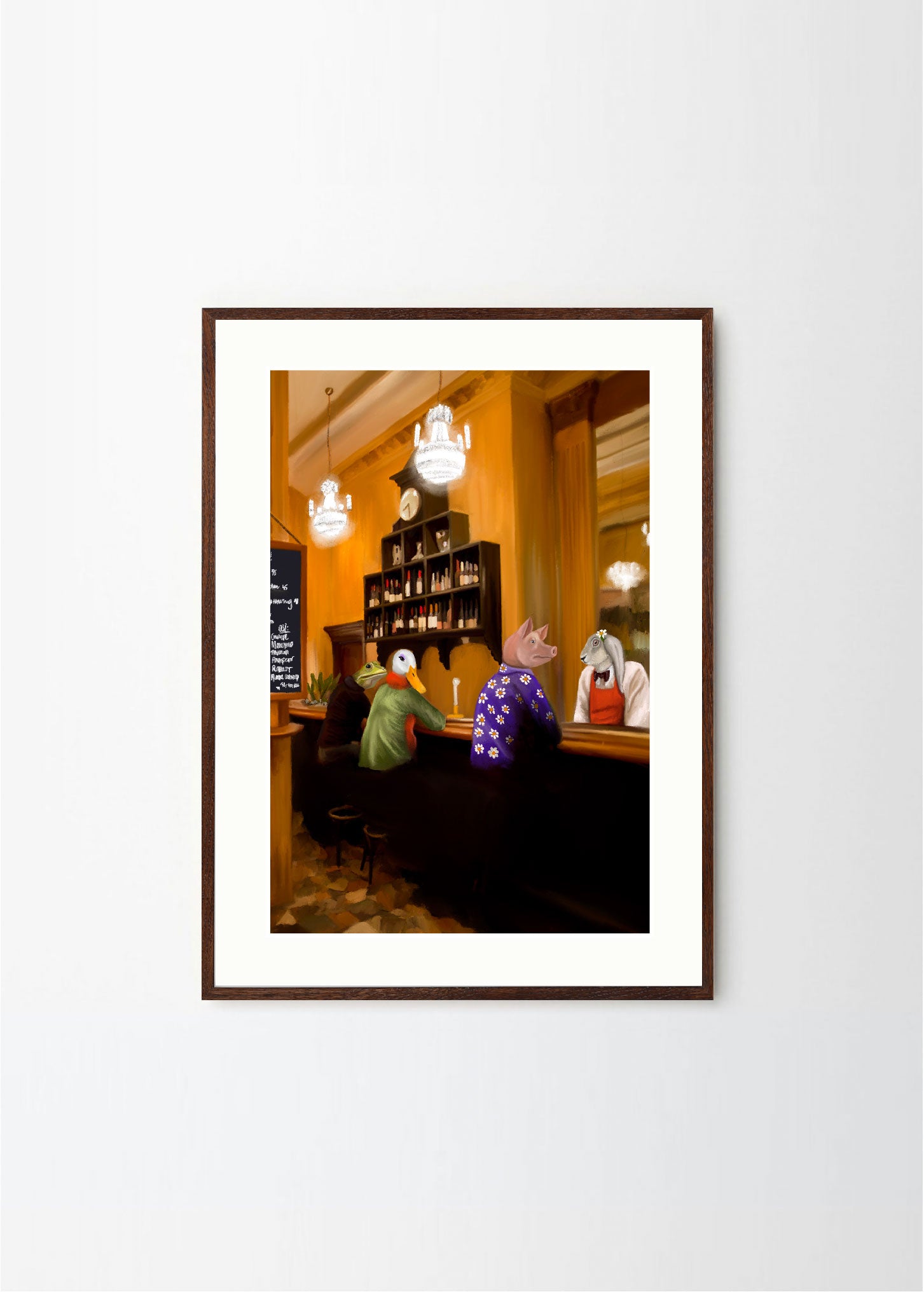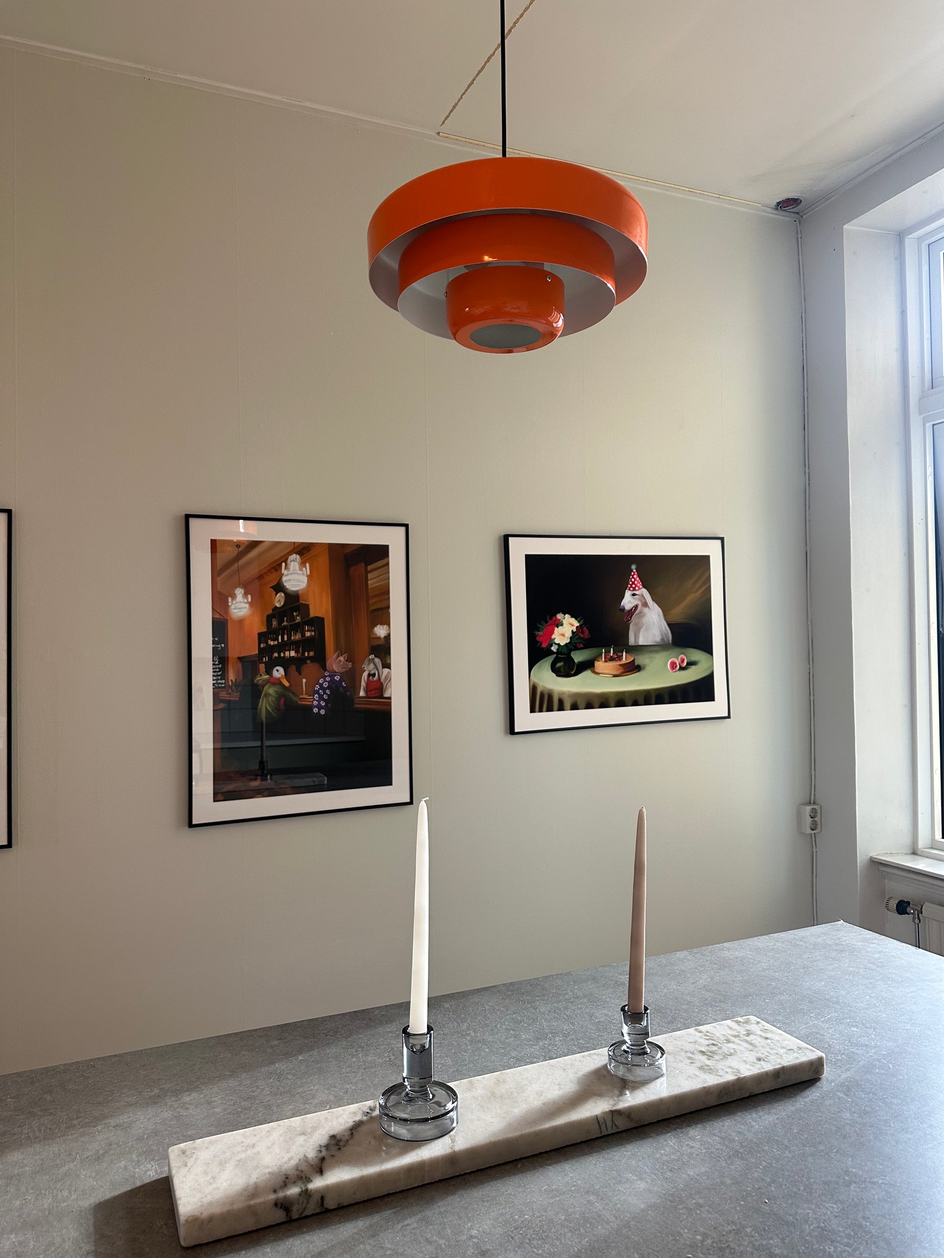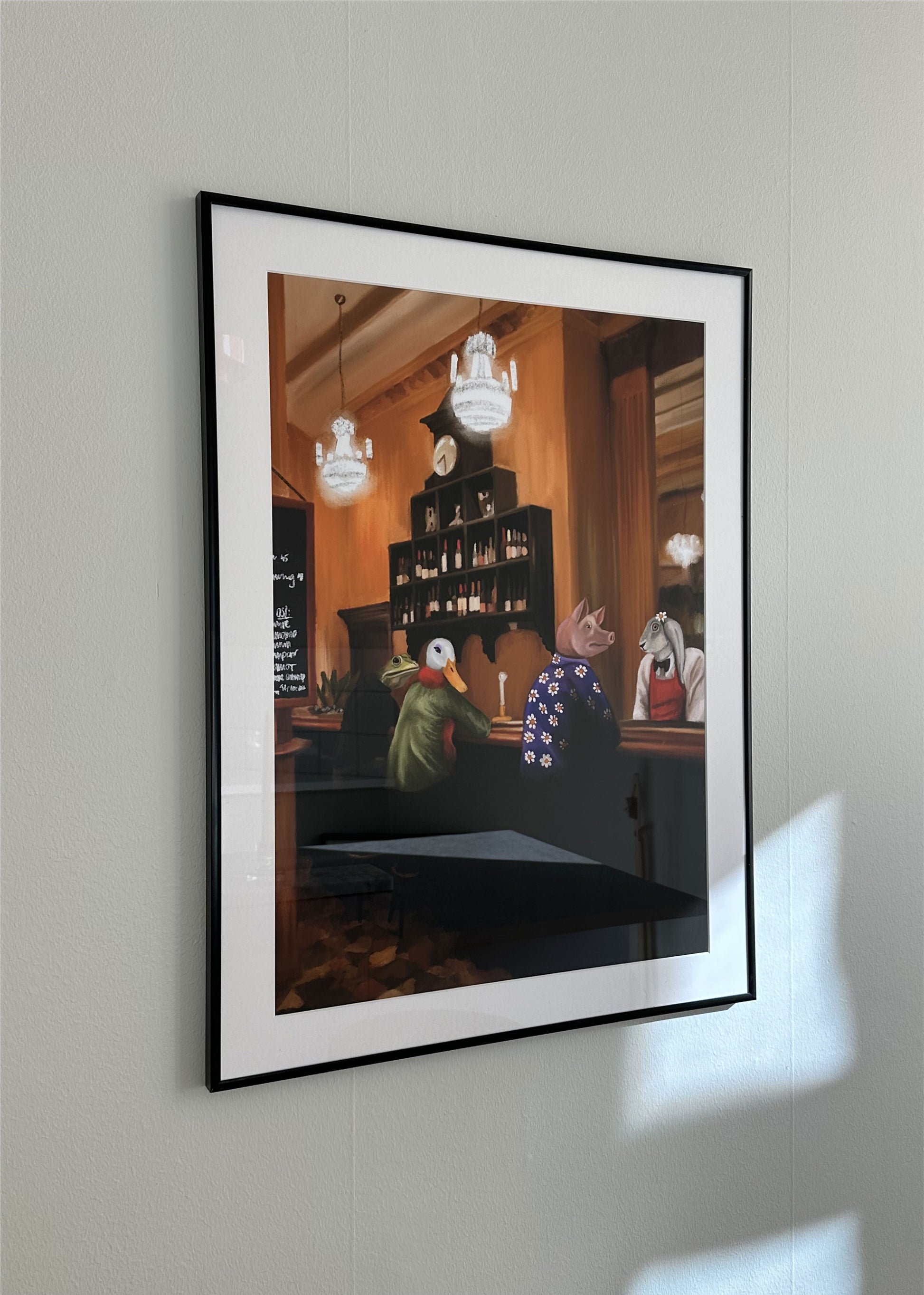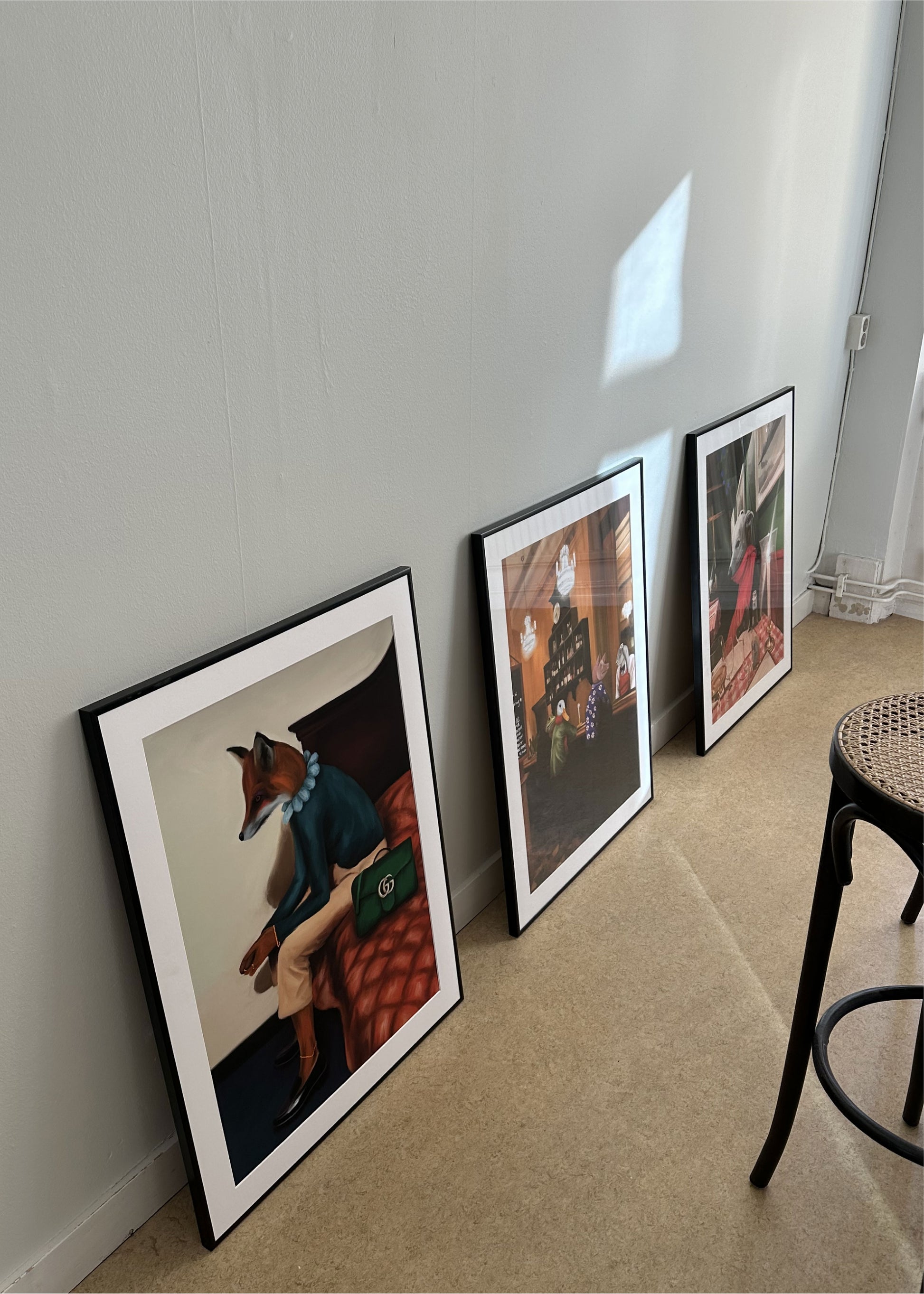 Stockholm-based artist Estelle Graf began her career in Paris, where she worked as an art director, creating illustrations for brands such as Sanoflore Paris and La Roche-Posay. She has always created art alongside her work as an art director, and in 2019 she debuted her first book, Tryckt Stämning, a satirical depiction of humans’ inner dialogues, published by Arvinius Orpheus. Her artworks have been featured in publications like Harper's Bazaar, PLAZA interior and ELLE Decorations and has been exhibited and sold in Stockholm, Berlin, Paris and New York. Estelle works both abstract and figurative and most significant for her work is her fables (animals in human contexts) and strong colors. A significant characteristic of Estelle Graf's work is that she almost always works with satire.