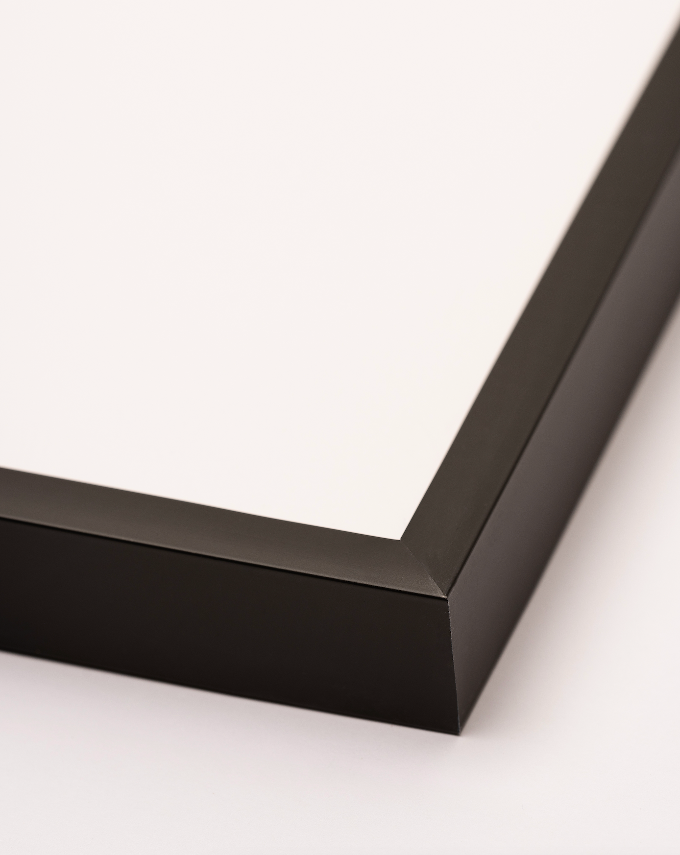 Black Wooden frame with plexiglass made of high-quality pine. Simple framing with clips on the back. Two metal hangers allow for both horizontal and vertical hanging. Protective plastic on plexiglass, to be removed before use.