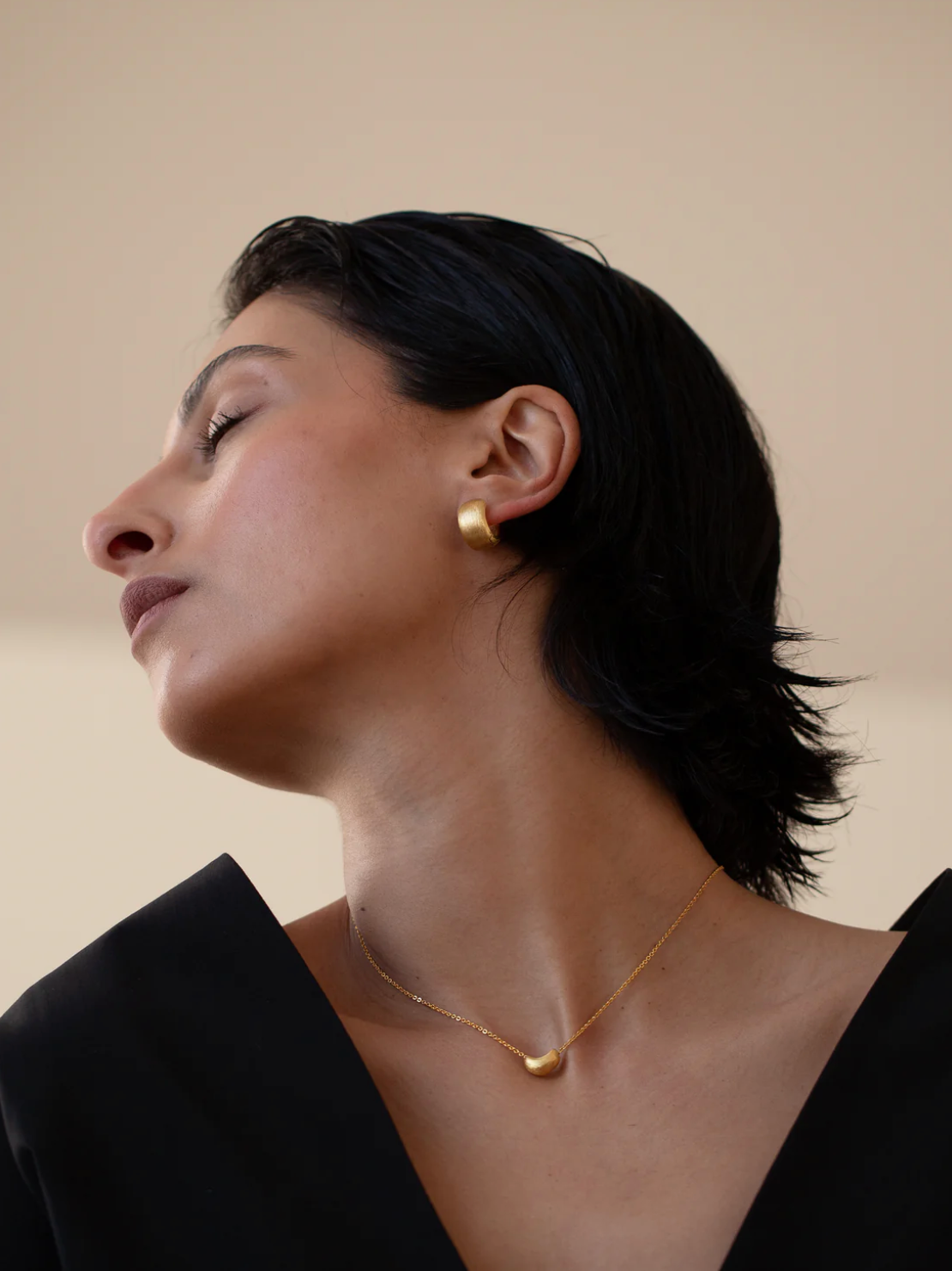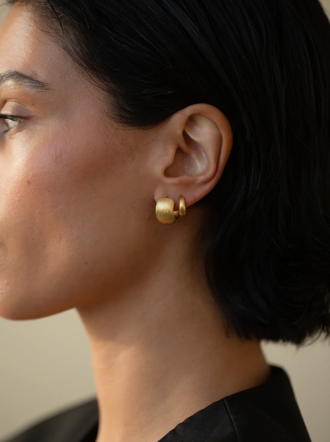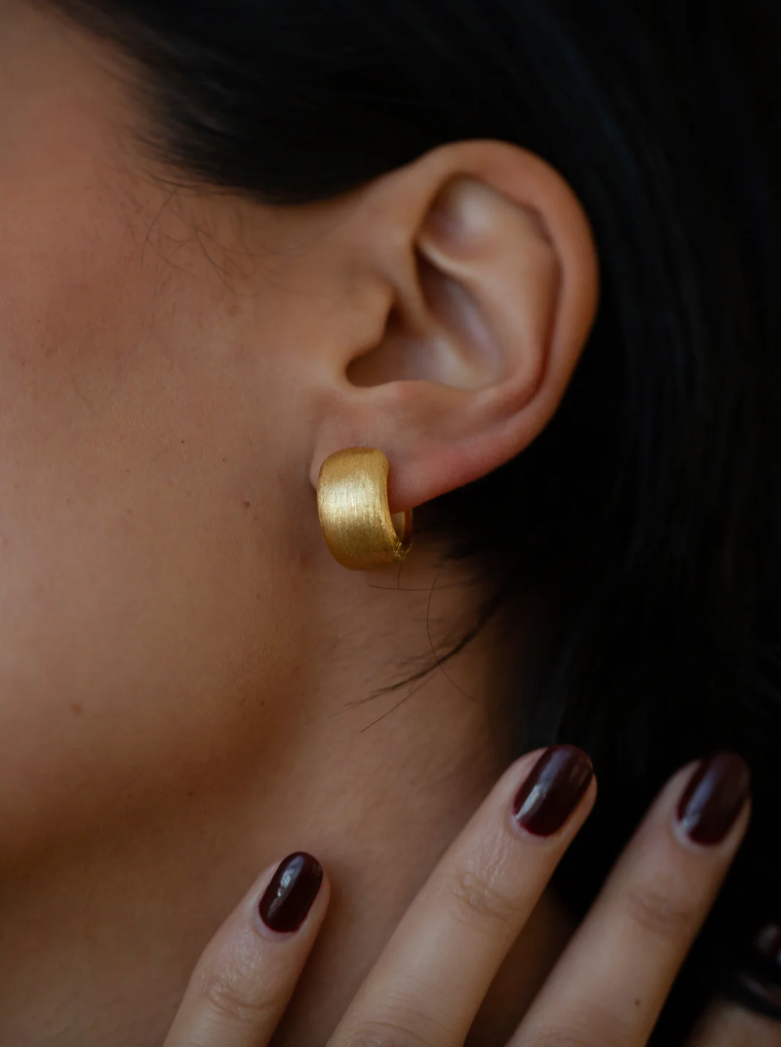 Our Brushed Dome Hoops are made of 18k gold plated brass and have a width of 1cm and an outer diameter of 1,7cm. They are also available in silver.