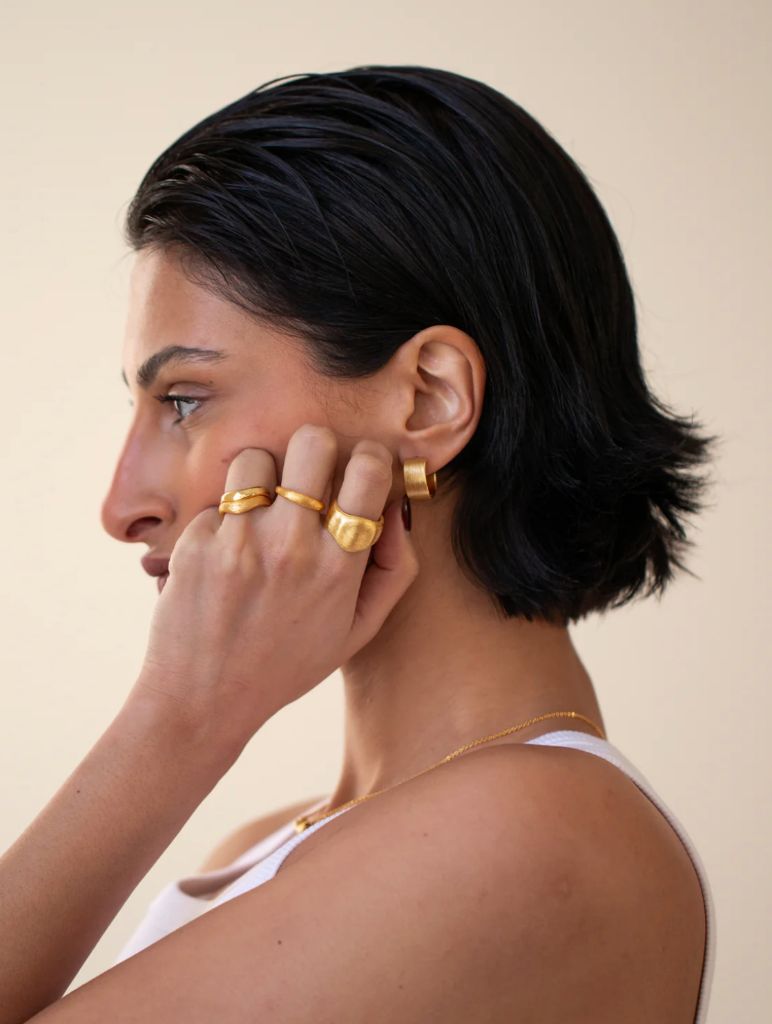 Our Brushed Ring is made of 18k gold plated brass and have a width of 5mm. This ring is also available in silver.