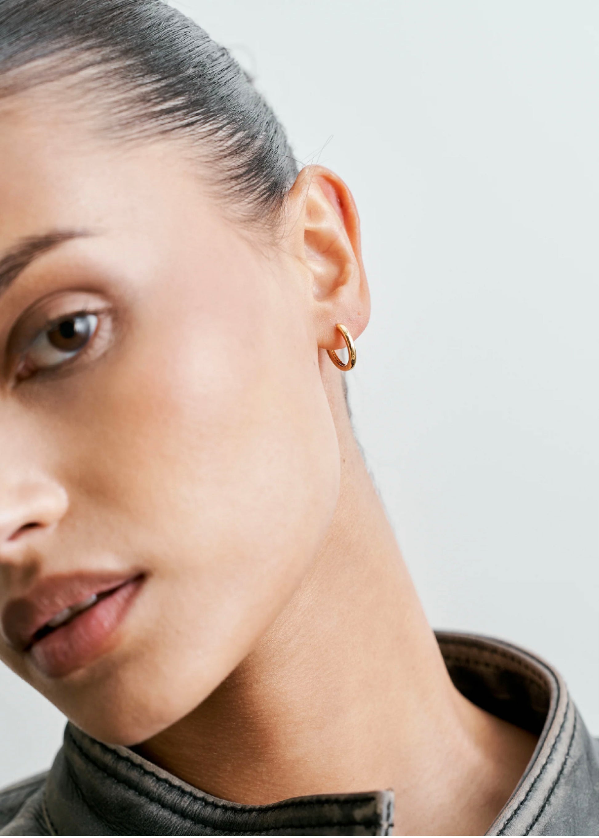The gold classic hoops are a must have and is a pair of earrings that will fit any outfit. The 15mm Basic Hoops are made of 18k gold plated brass and feature a smooth golden surface. These timeless earrings are sold in pair and has a diameter of 15mm. These hoops are also available in 10mm, 20mm, silver and as a 3-pack.