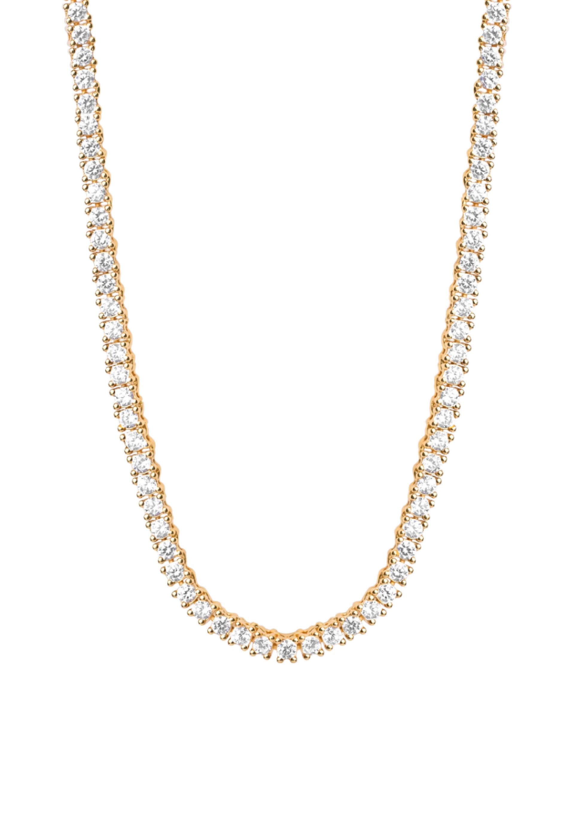 Our Tennis Necklace is our most luxurious necklace and is covered with beautiful white zirconias. This necklace is elegant and will definitely make you feel expensive. The necklace 45 cm long and the white cubic zirconias measures 3mm. Tennis necklace match perfectly with our Tennis Bracelet.