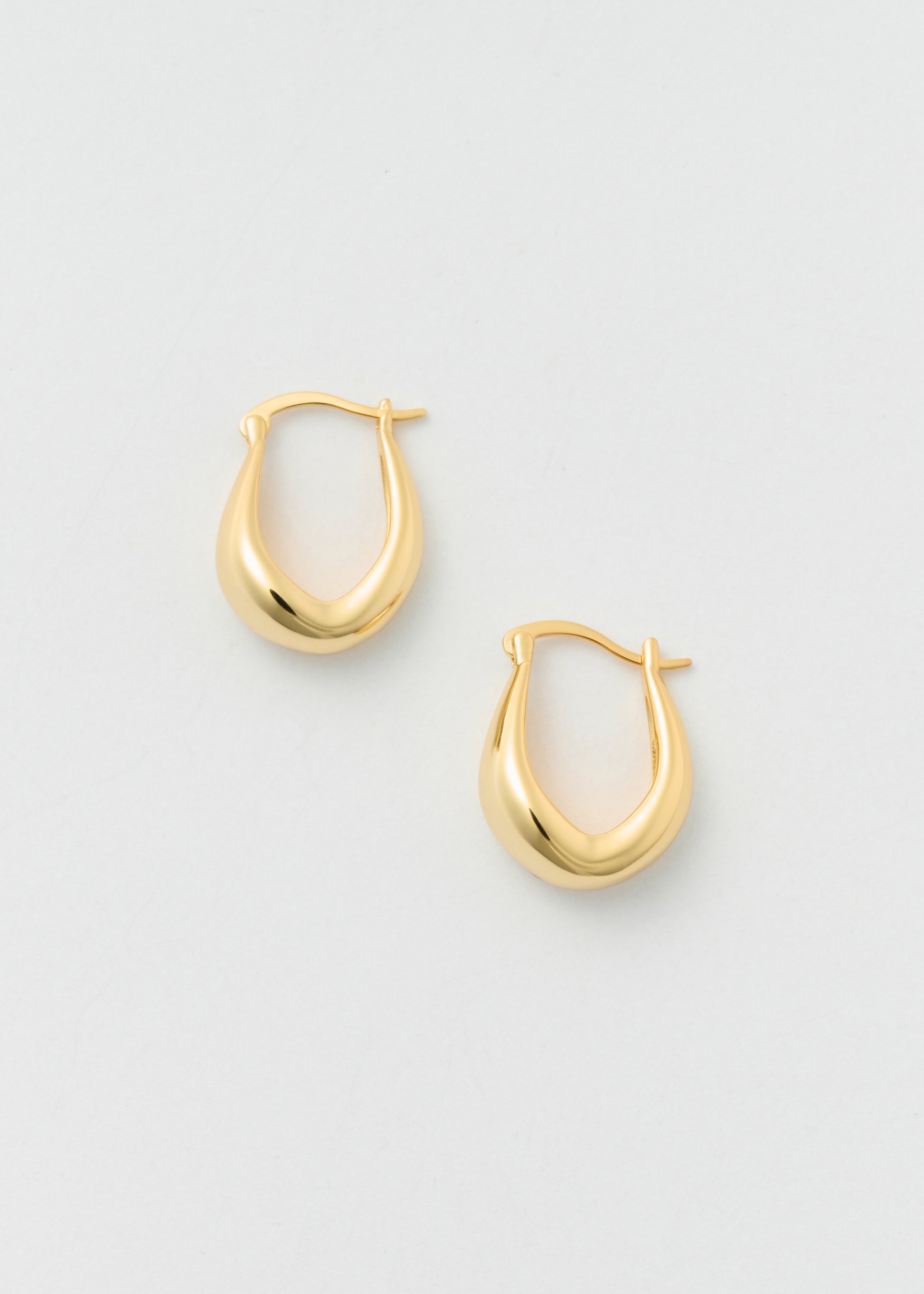 Our Dakar Earrings in gold are made in sterling silver and feature a smooth shiny surface. These timeless and water resistant silver earrings are sold in pair and has an inner diameter of 13mm and a thickness of 3mm. You can literally wear these all day, every day and forget they’re even on your ear. These hoops are available in different sizes and gold here