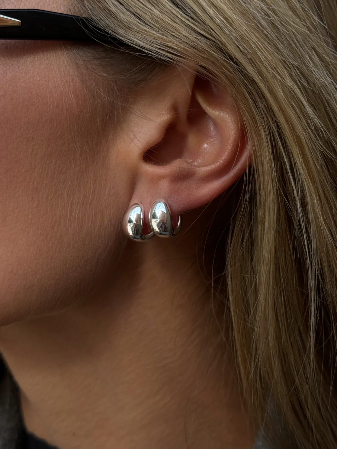 Our Elysian Huggies Silver are made of 925 silver plated brass and has a length of 1,4 cm and a width of 8 mm. They are also available in gold.