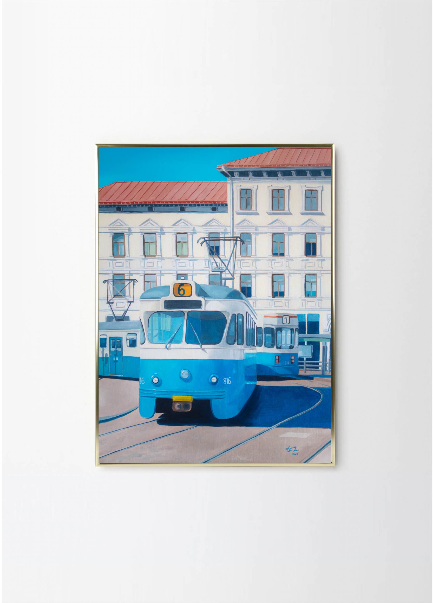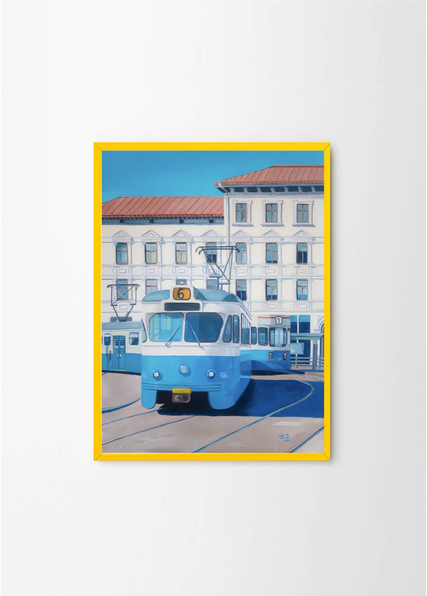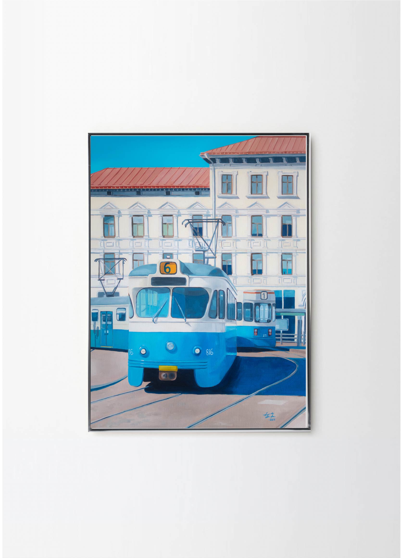 The trams, symbolic of the city's collective experience, foster a sense of community as they carry passengers from one destination to another. They become the backdrop for everyday stories and interactions. Her paintings serve as gentle reminders to cherish the connections we make and the places we inhabit. In her own quiet way, Elin encourages us to find beauty in the simplicity of everyday life.