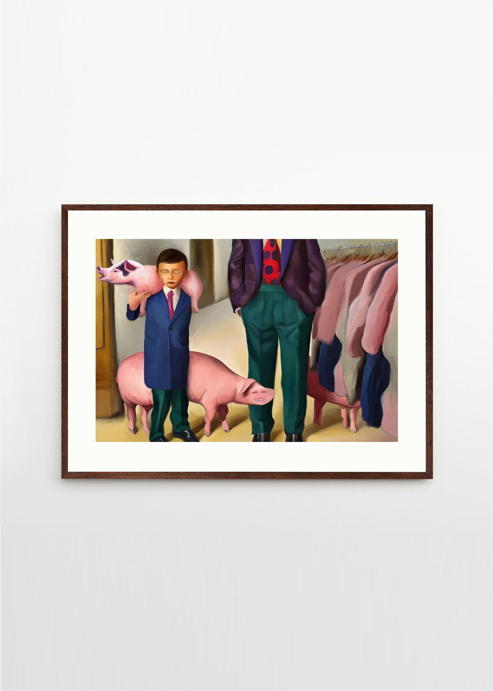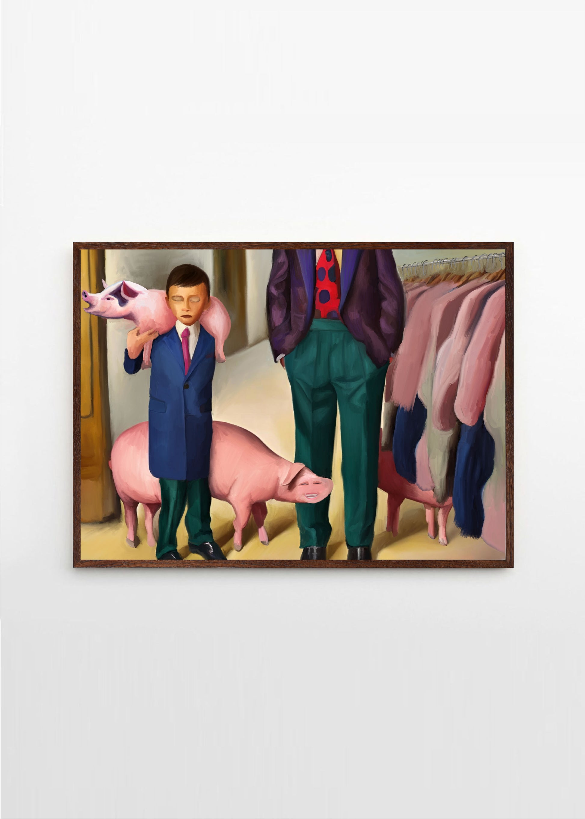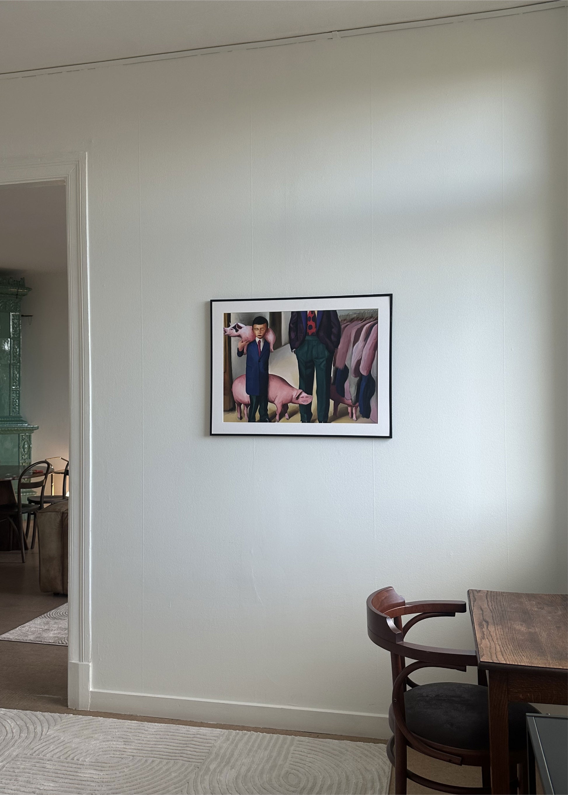Stockholm-based artist Estelle Graf began her career in Paris, where she worked as an art director, creating illustrations for brands such as Sanoflore Paris and La Roche-Posay. She has always created art alongside her work as an art director, and in 2019 she debuted her first book, Tryckt Stämning, a satirical depiction of humans’ inner dialogues, published by Arvinius Orpheus. Her artworks have been featured in publications like Harper's Bazaar, PLAZA interior and ELLE Decorations and has been exhibited and sold in Stockholm, Berlin, Paris and New York. Estelle works both abstract and figurative and most significant for her work is her fables (animals in human contexts) and strong colors. A significant characteristic of Estelle Graf's work is that she almost always works with satire.