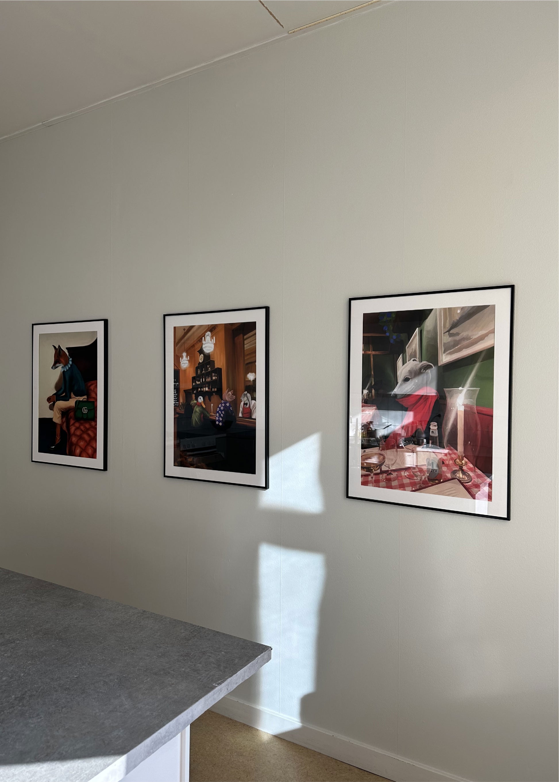 Stockholm-based artist Estelle Graf began her career in Paris, where she worked as an art director, creating illustrations for brands such as Sanoflore Paris and La Roche-Posay. She has always created art alongside her work as an art director, and in 2019 she debuted her first book, Tryckt Stämning, a satirical depiction of humans’ inner dialogues, published by Arvinius Orpheus. Her artworks have been featured in publications like Harper's Bazaar, PLAZA interior and ELLE Decorations and has been exhibited and sold in Stockholm, Berlin, Paris and New York. Estelle works both abstract and figurative and most significant for her work is her fables (animals in human contexts) and strong colors. A significant characteristic of Estelle Graf's work is that she almost always works with satire.