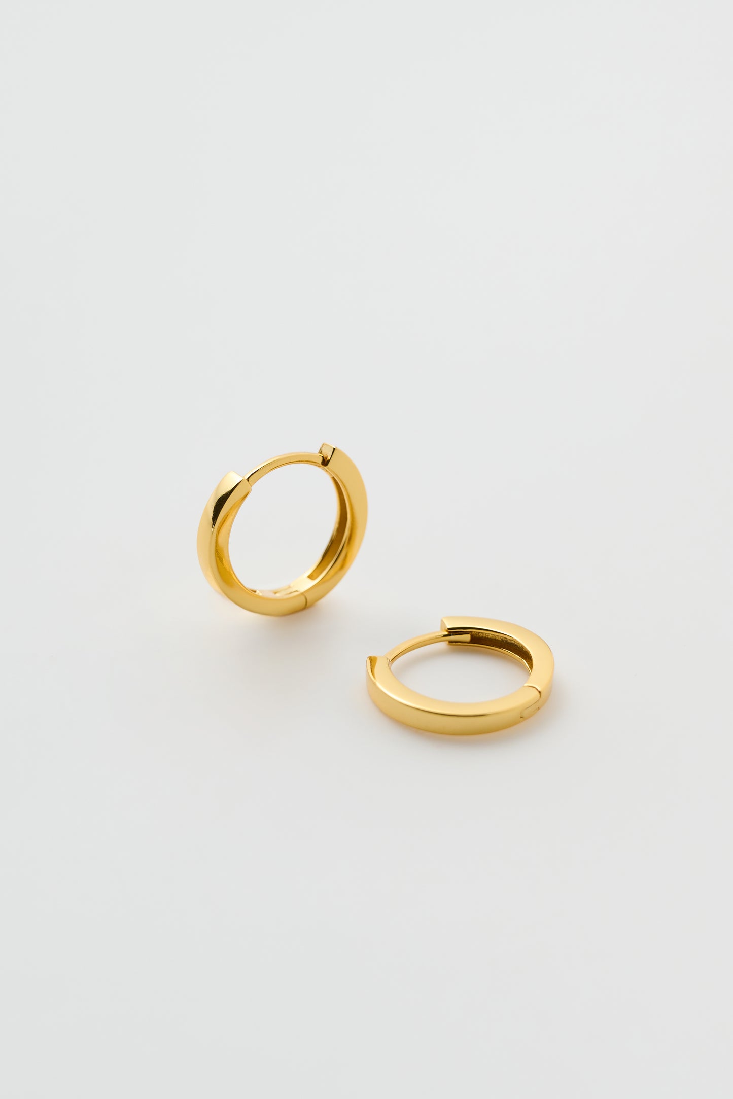 Our 10mm earrings in gold are made in 18K gold plated sterling silver and feature a smooth shiny surface. These timeless and water resistant silver earrings are sold in pair and has an inner diameter of 10mm. You can literally wear these all day, every day and forget they’re even on you ear. Find more here.