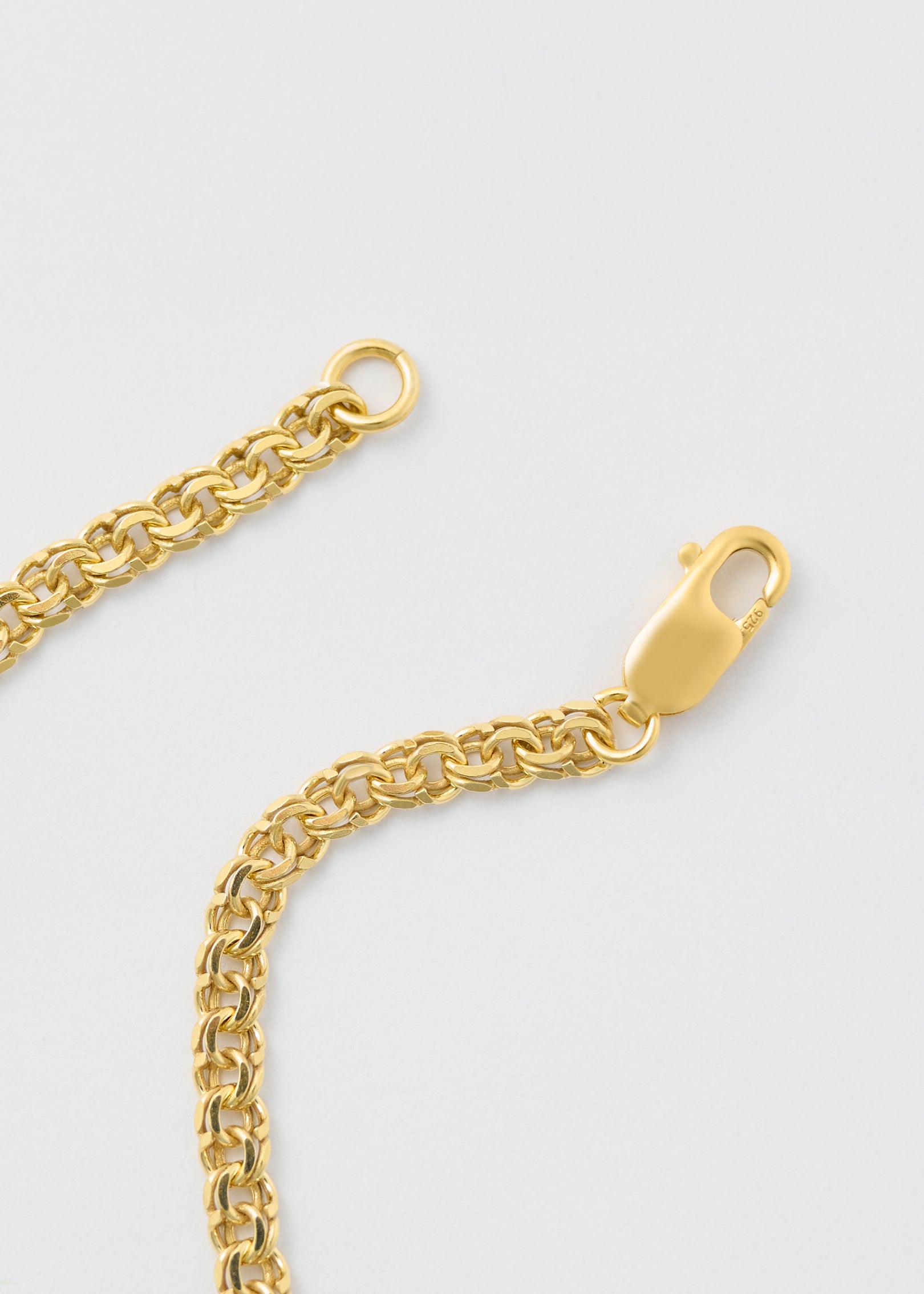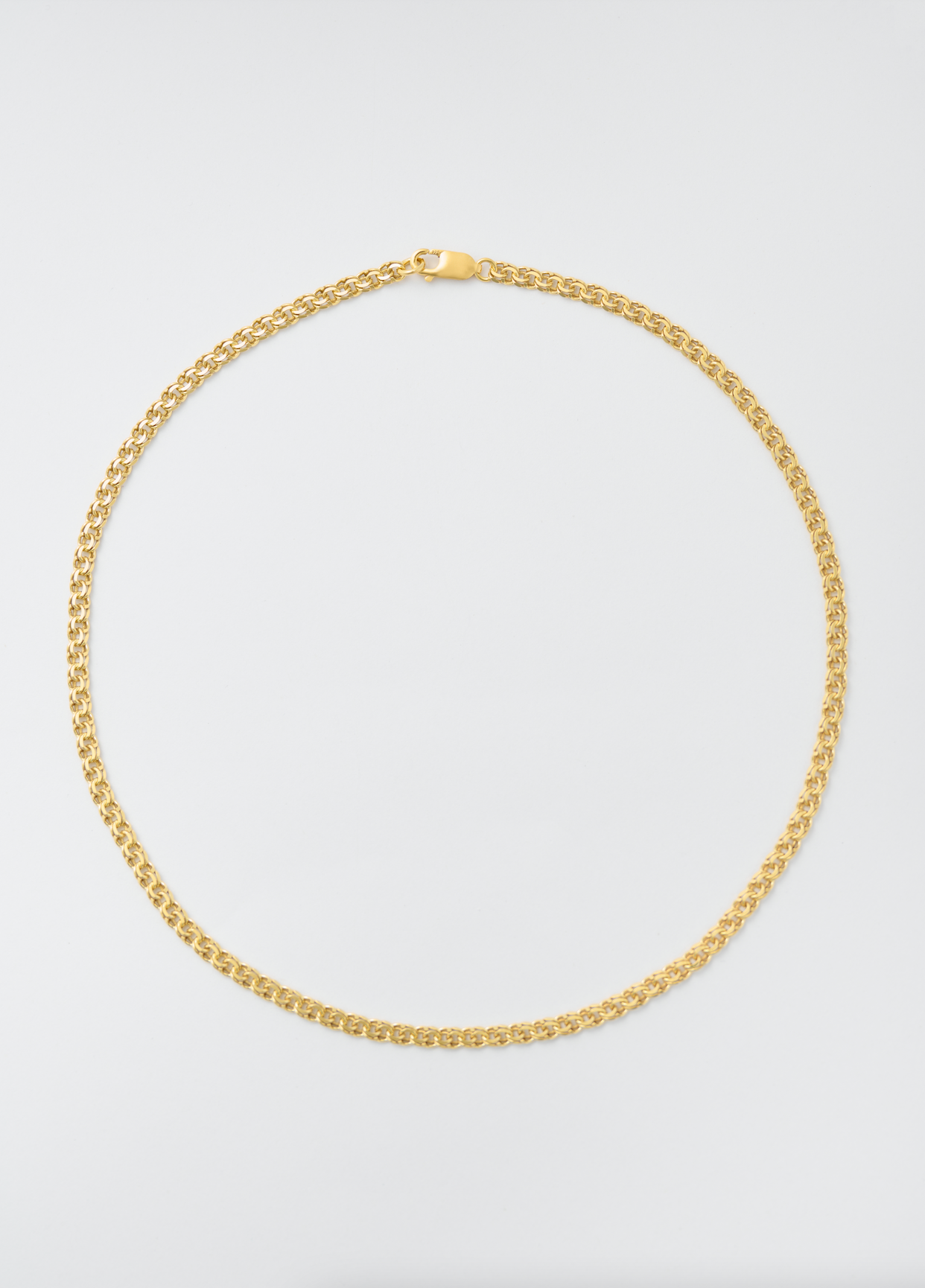 Our Gold Bismarck Necklace is timeless, unisex and unique. Women's size are usually around 43 cm and men's sizes are usually around 48 cm. This necklace is available in silver and similar styles here.