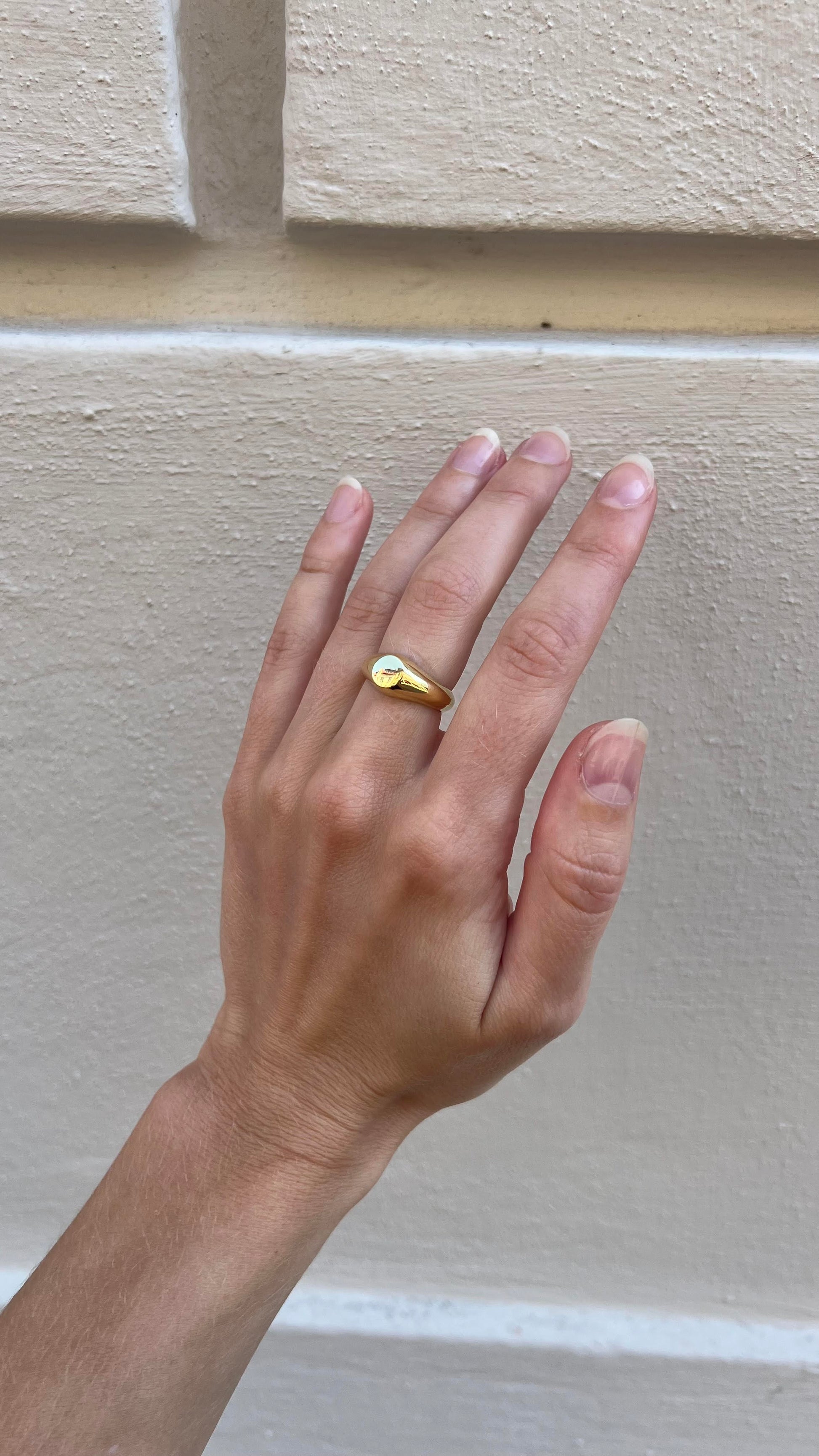 Gold Mini Signet Ring is made of 100% Sterling Silver with an agere coating to avoid the need to keep clean. Choose between 18k gold-plating or silver.