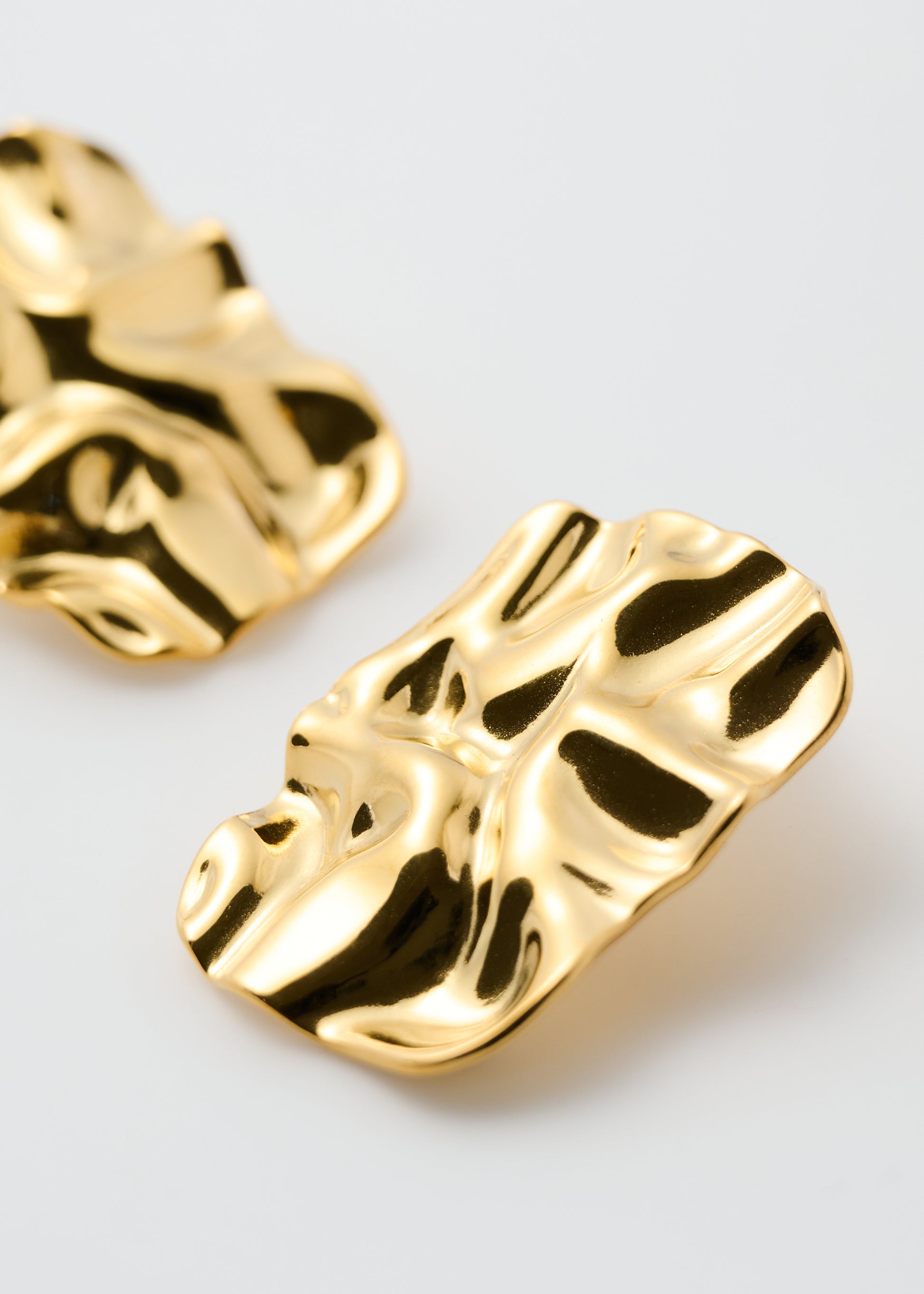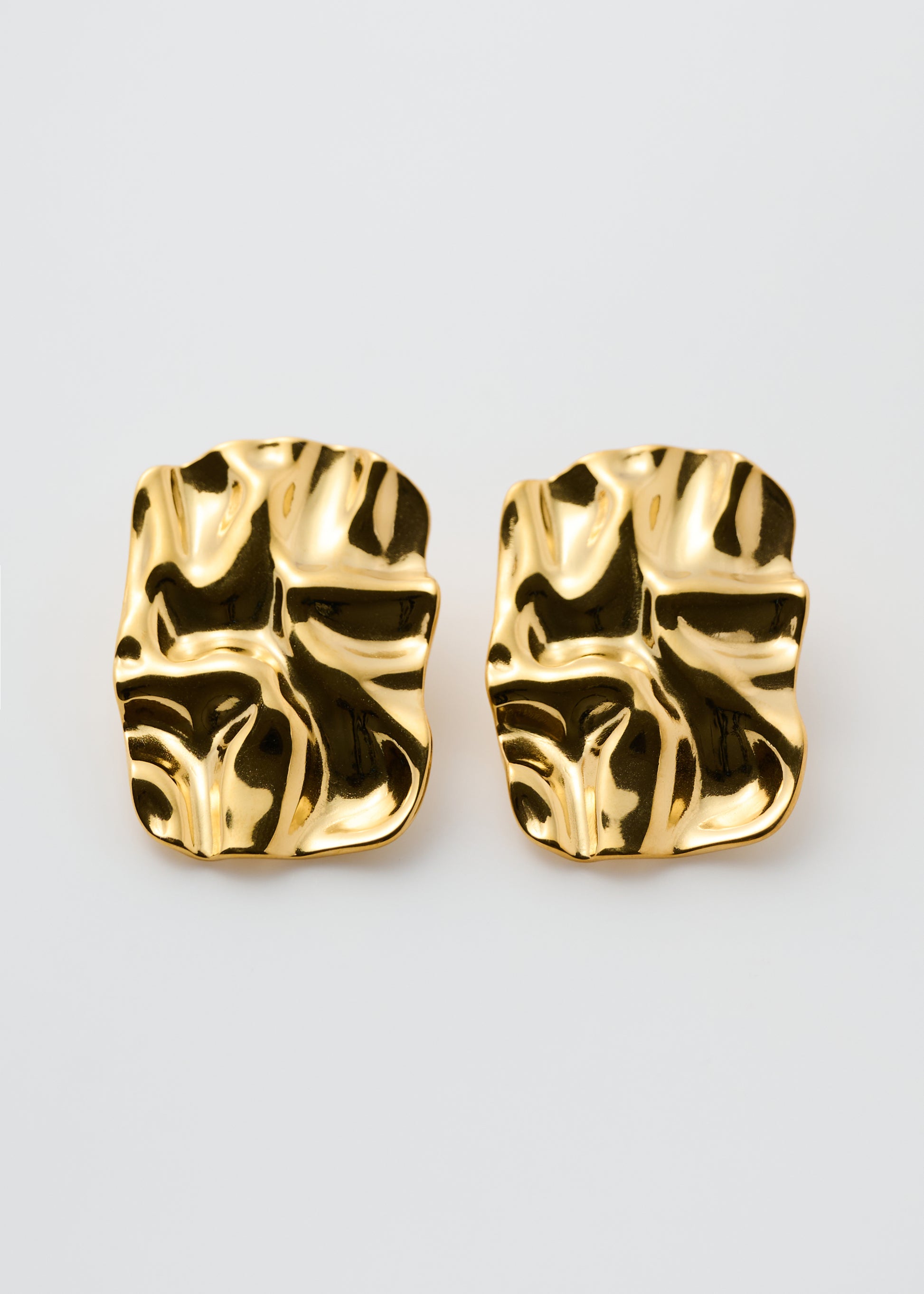 Our Matriarch Earrings in gold are made in 18K gold plated brass silver and feature a smooth shiny surface. These timeless and water resistant silver earrings are sold in pair and arre about 35 x 50 mm and a thickness of 1mm. You can literally wear these all day, every day and forget they’re even on you ear. Find more here.