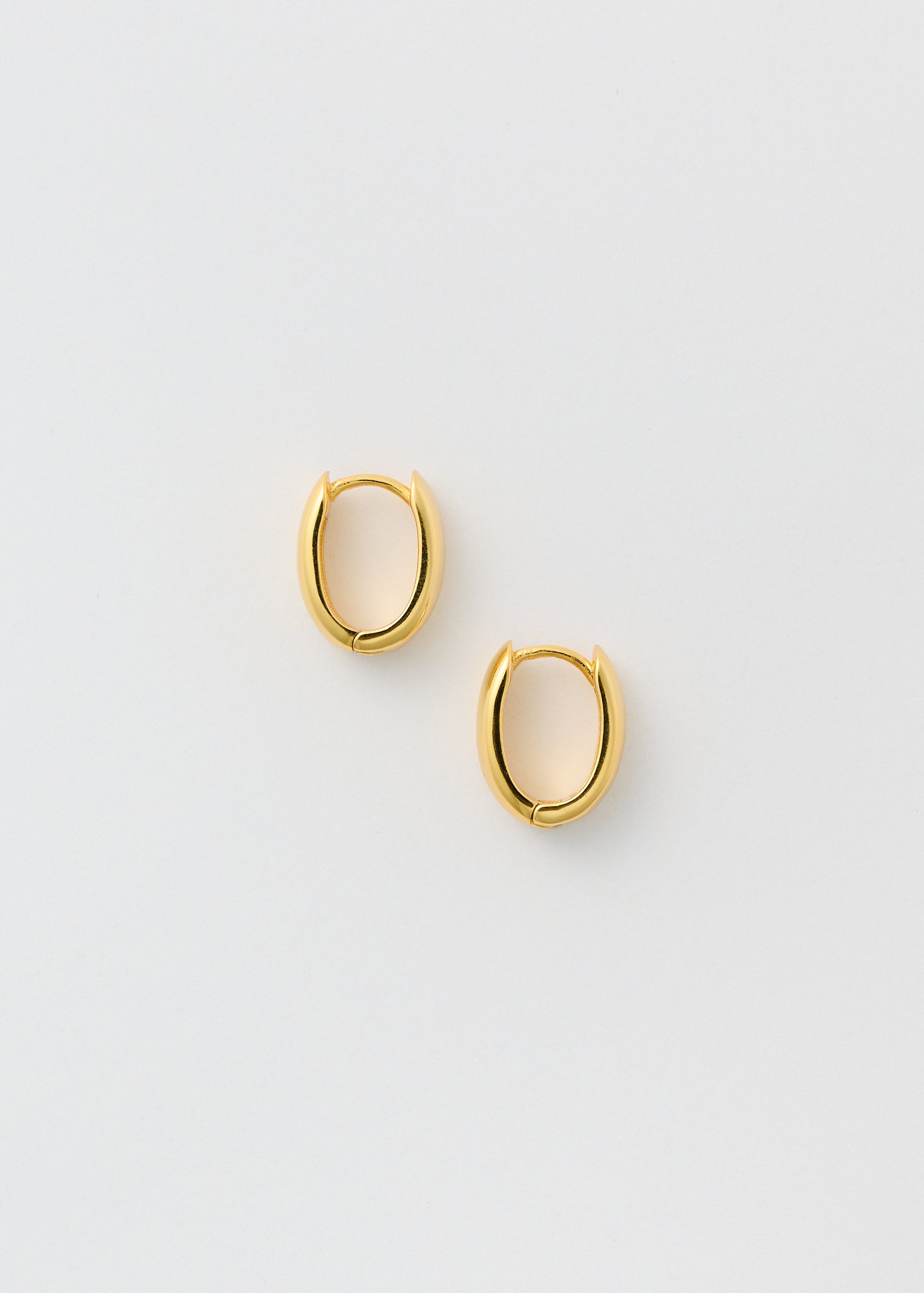 Our Primadonna Earrings in gold are made in 18K gold plated sterling silver and feature a smooth shiny surface. These timeless and water resistant silver earrings are sold in pair and has a diameter of 12mm and a thickness of 3mm. You can literally wear these all day, every day and forget they’re even on you ear. Find more here.