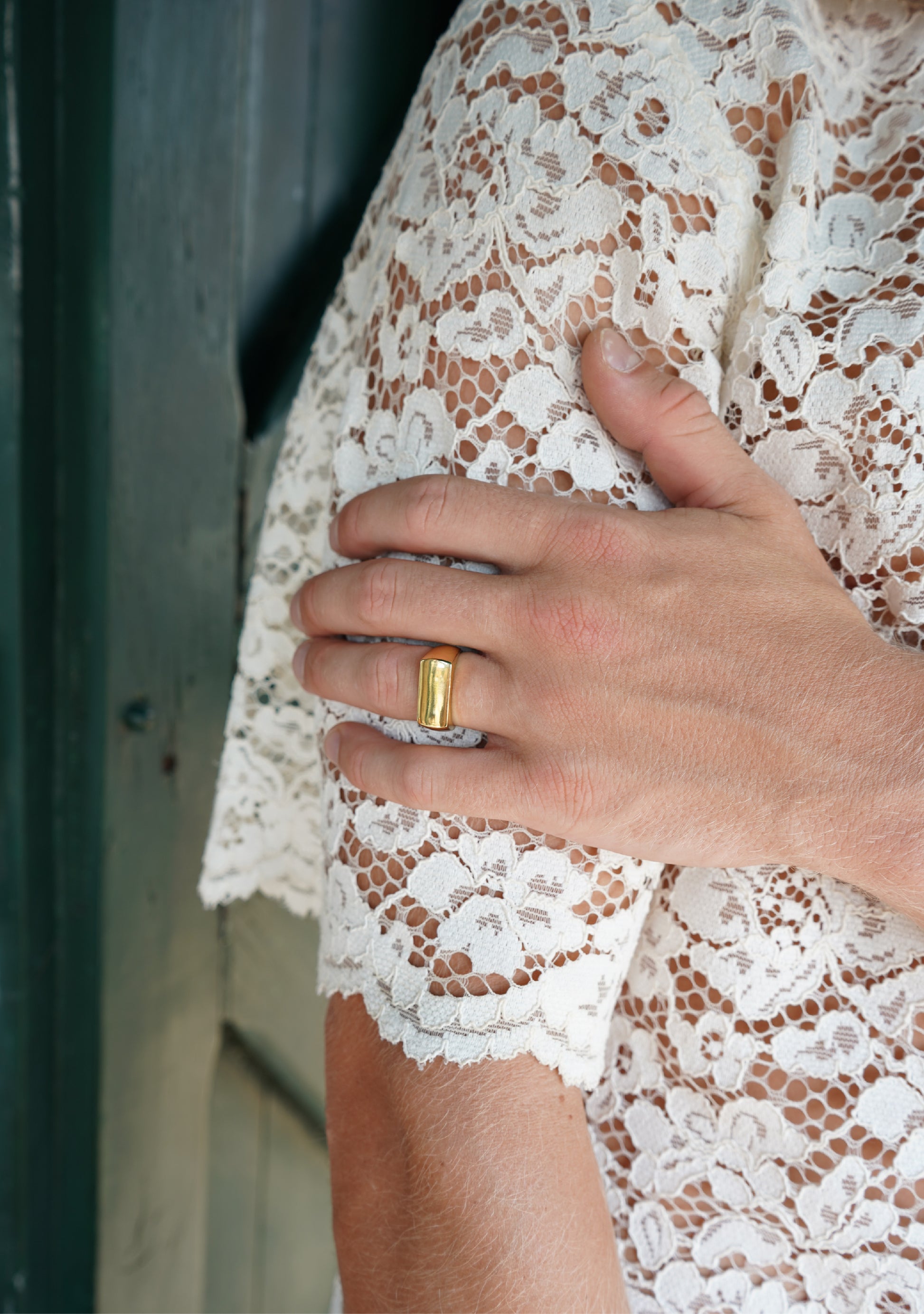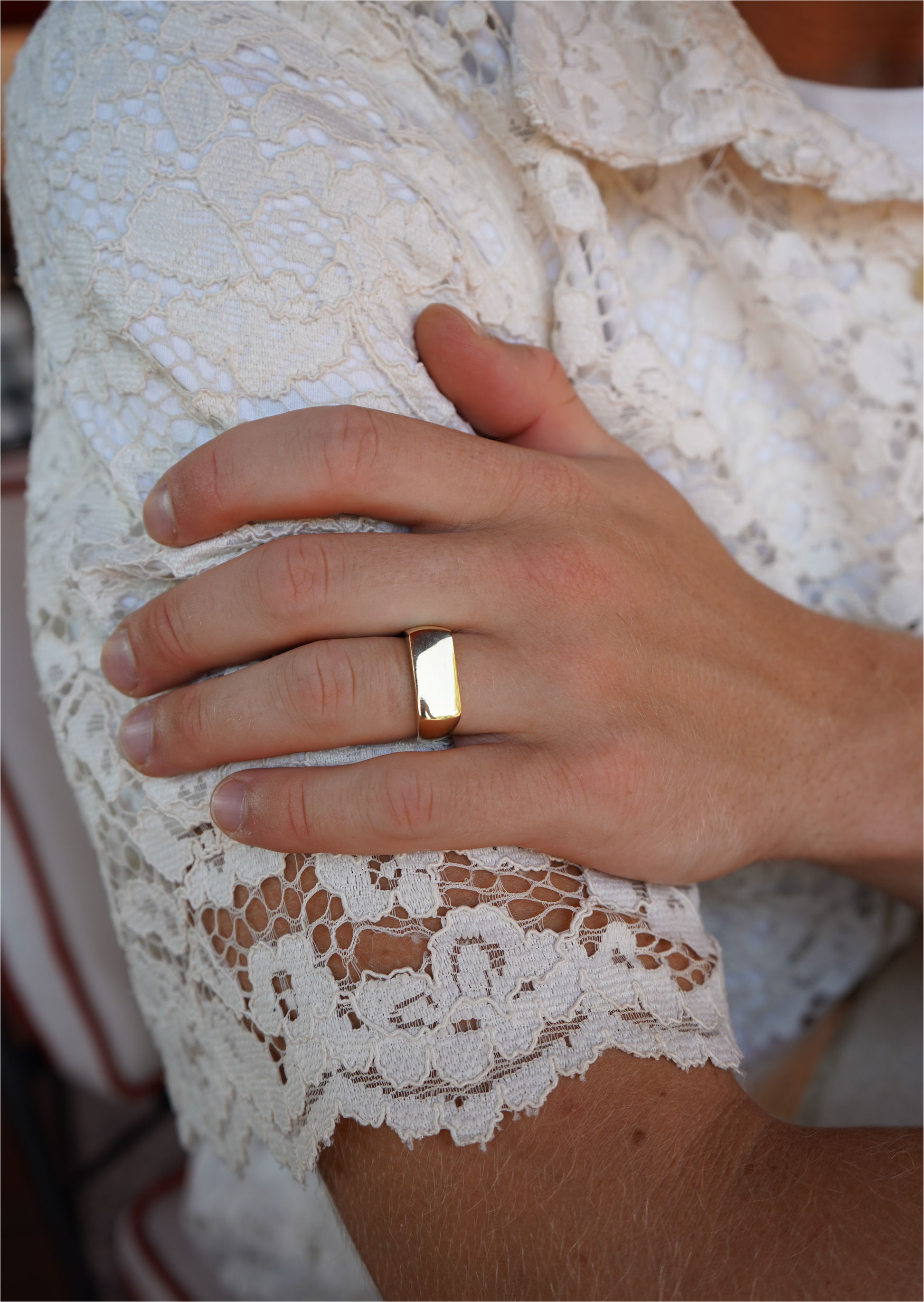 Gold Sleek Signet Ring is made of 100% Sterling Silver with an agere coating to avoid the need to keep clean. Choose between 18k gold-plating or silver.