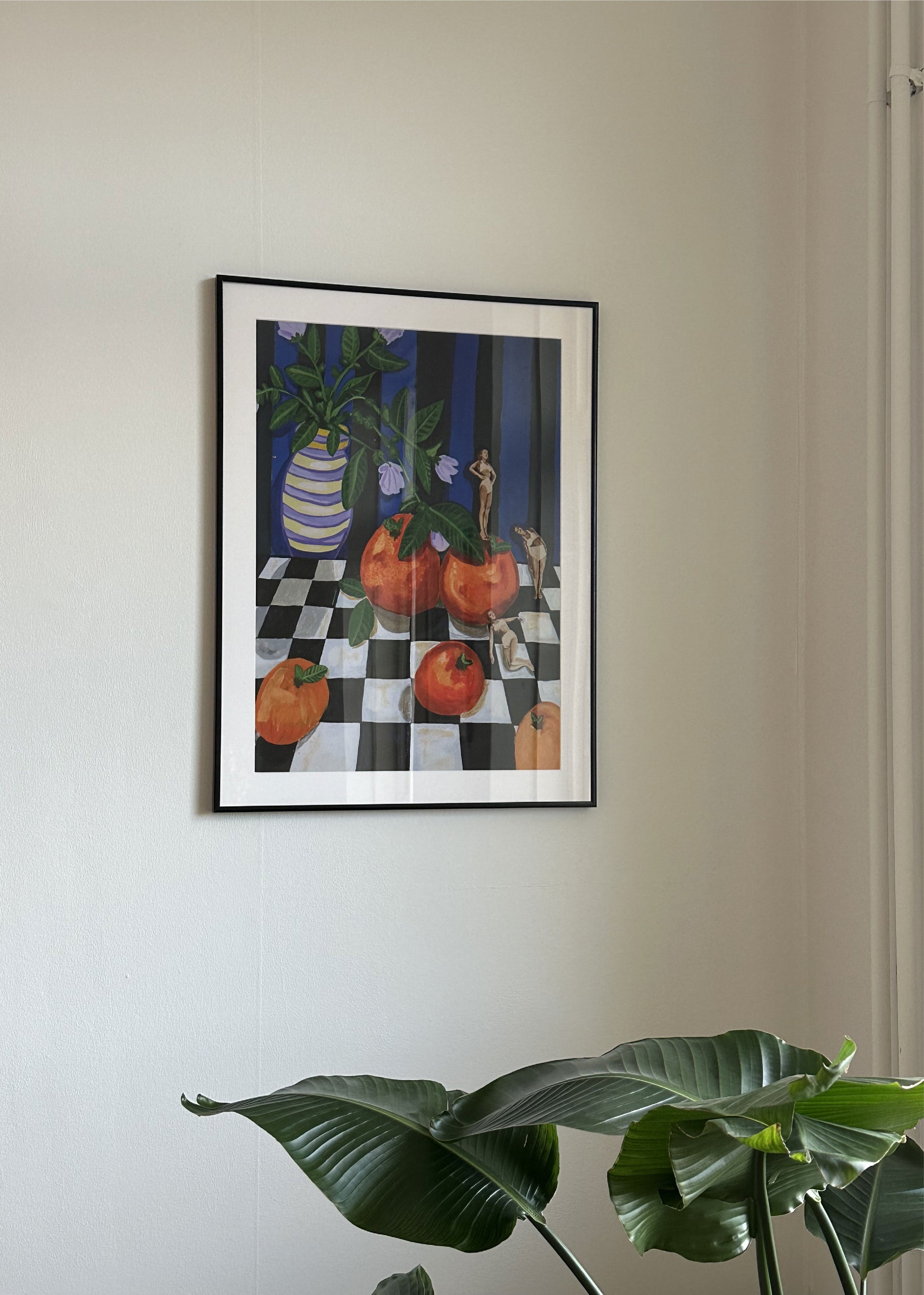 Stockholm-based artist Estelle Graf began her career in Paris, where she worked as an art director, creating illustrations for brands such as Sanoflore Paris and La Roche-Posay. She has always created art alongside her work as an art director, and in 2019 she debuted her first book, Tryckt Stämning, a satirical depiction of humans’ inner dialogues, published by Arvinius Orpheus. Her artworks have been featured in publications like Harper's Bazaar, PLAZA interior and ELLE Decorations and has been exhibited and sold in Stockholm, Berlin, Paris and New York. Estelle works both abstract and figurative and most significant for her work is her fables (animals in human contexts) and strong colors. A significant characteristic of Estelle Graf's work is that she almost always works with satire.
