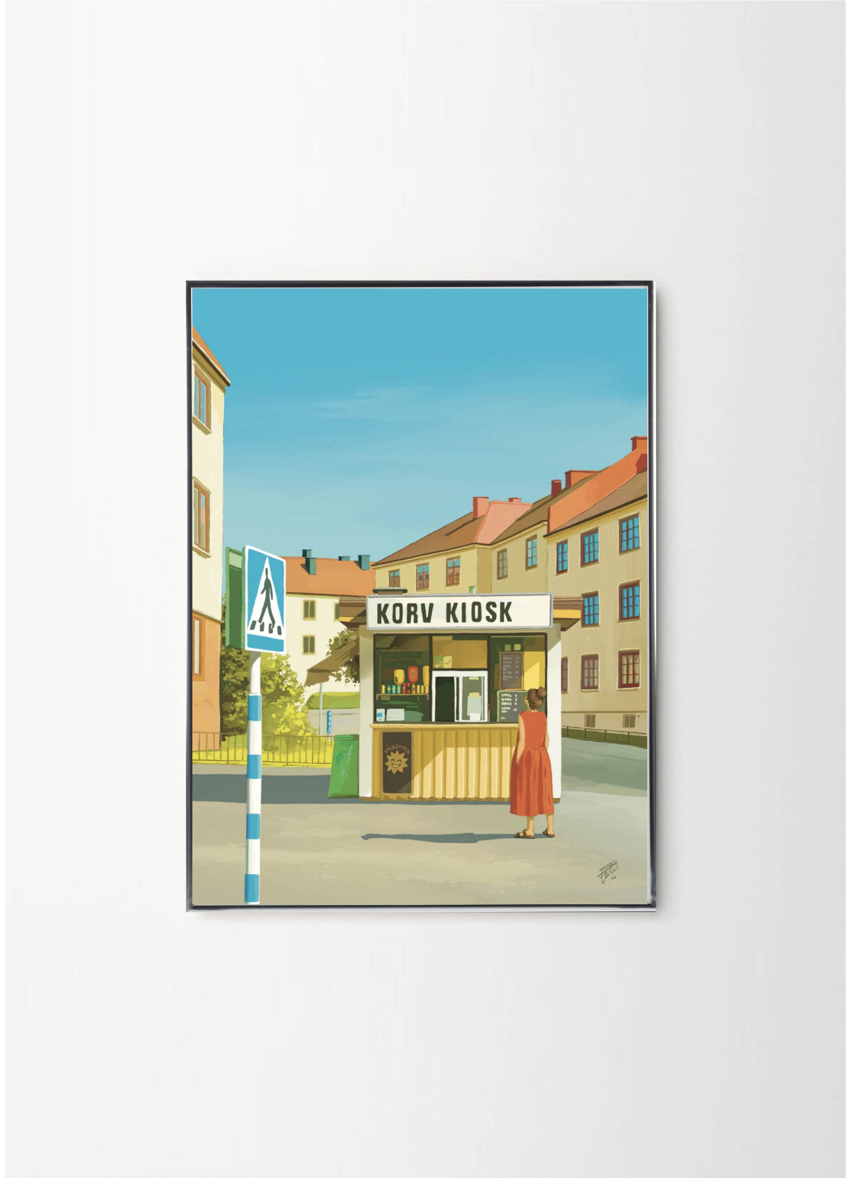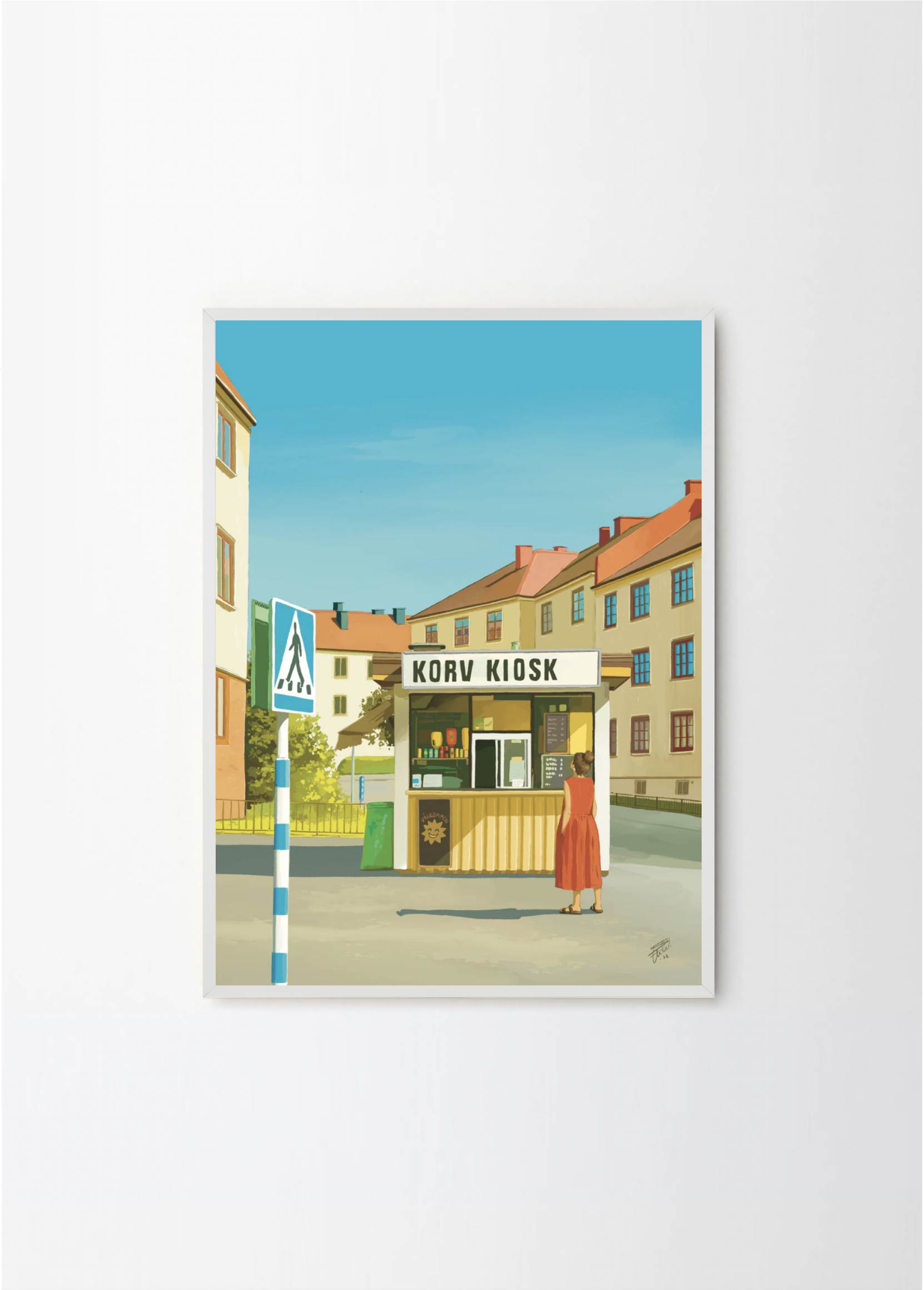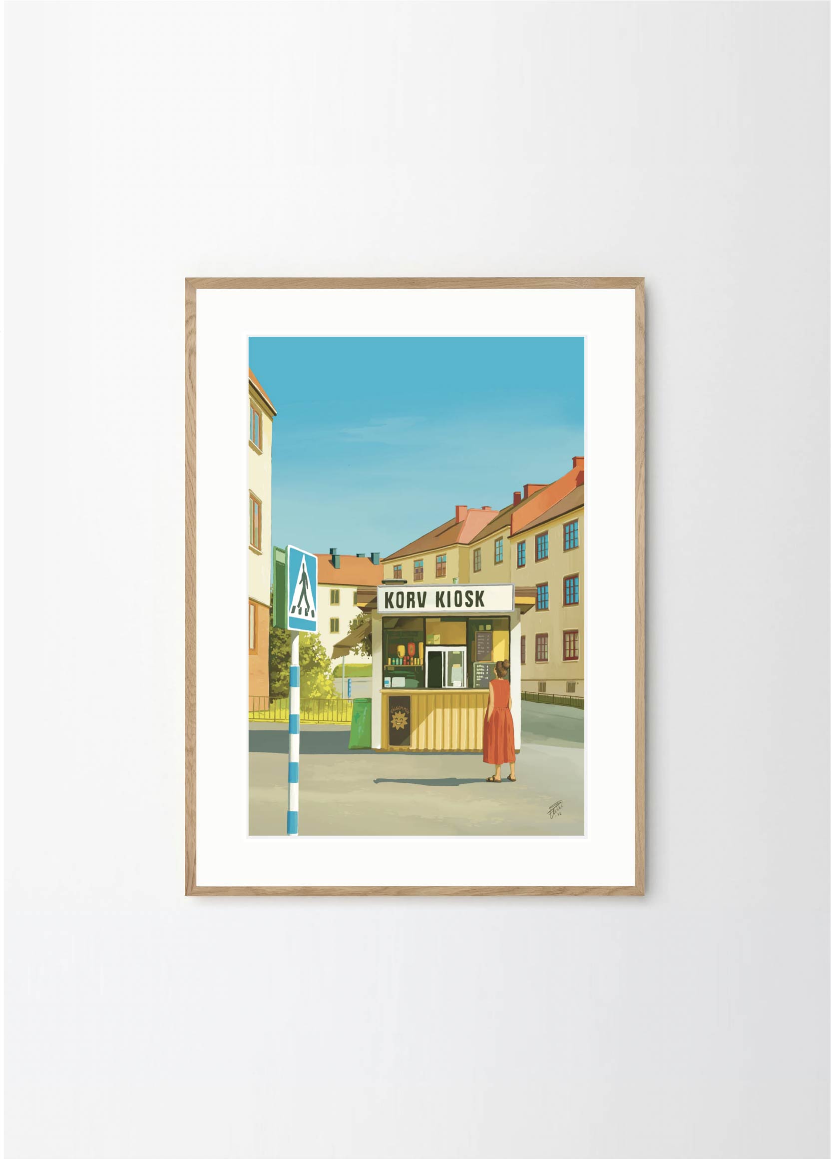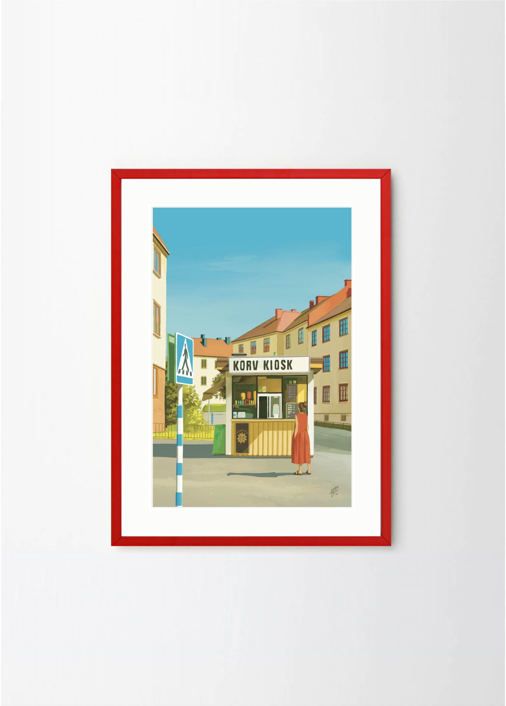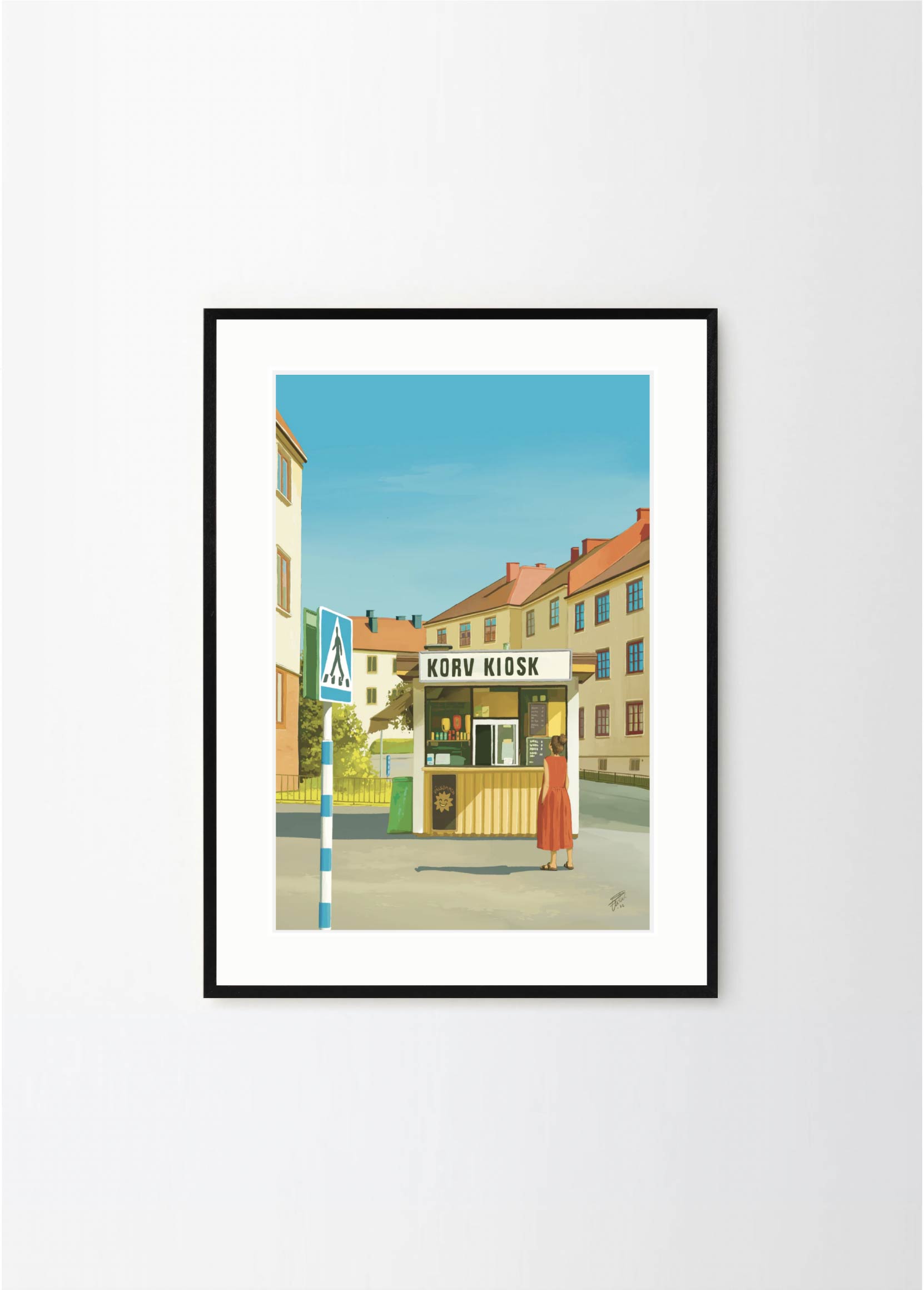 This artwork depicts the classic landmark at Mariaplan in Majorna, Gothenburg. The lovely yellow, red and blue colors makes it perfect for a pink, walnut or purple frame, with or without a passepartout.