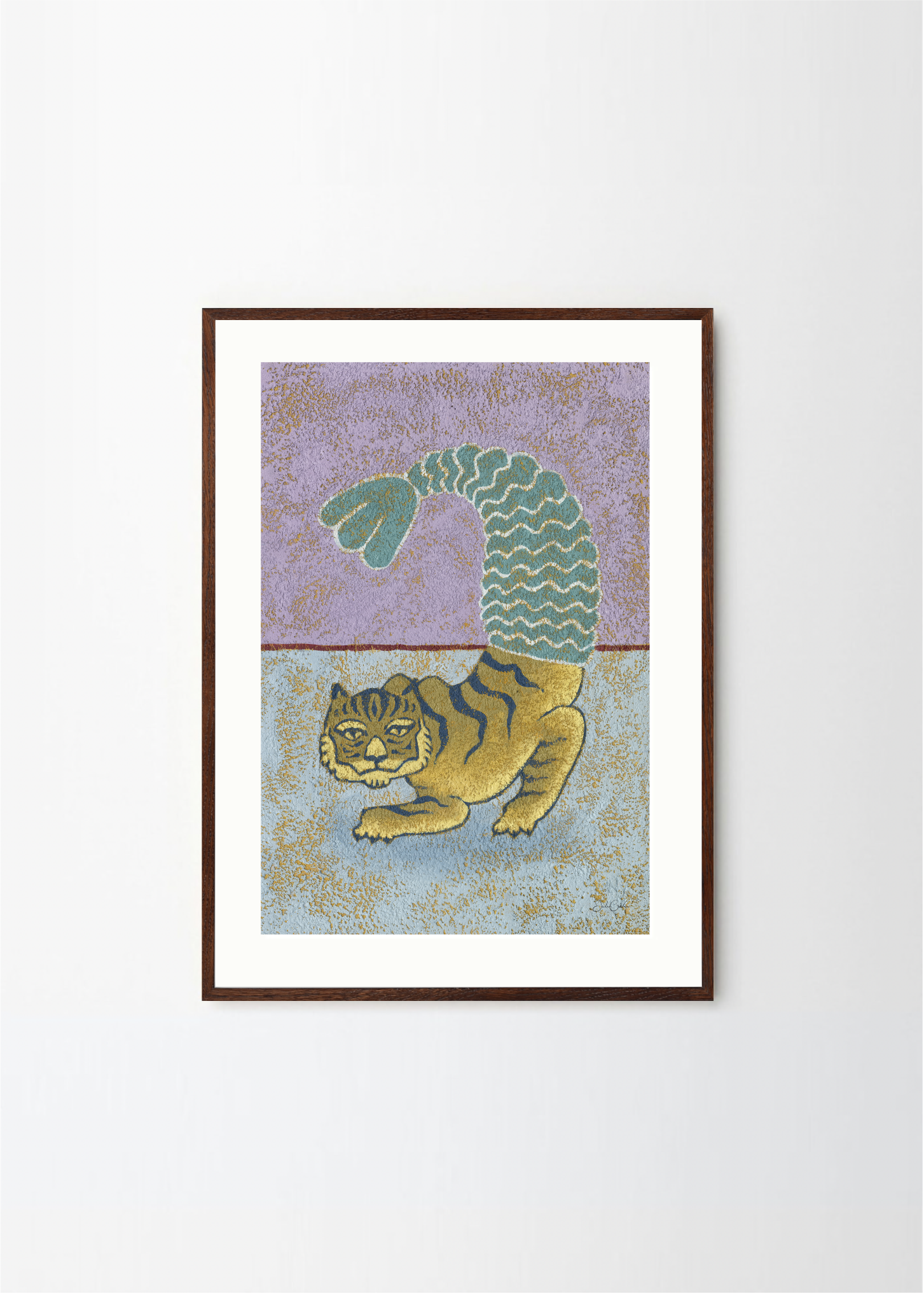 Mercat is a whimsical hybrid of feline and fish—half cat, half mermaid—set against a dreamy split background of lavender and ocean blue. With its playful surrealism and hand-textured style, Julie Celina blends myth, humor, and modern symbolism into a collectible creature that feels both ancient and fresh.