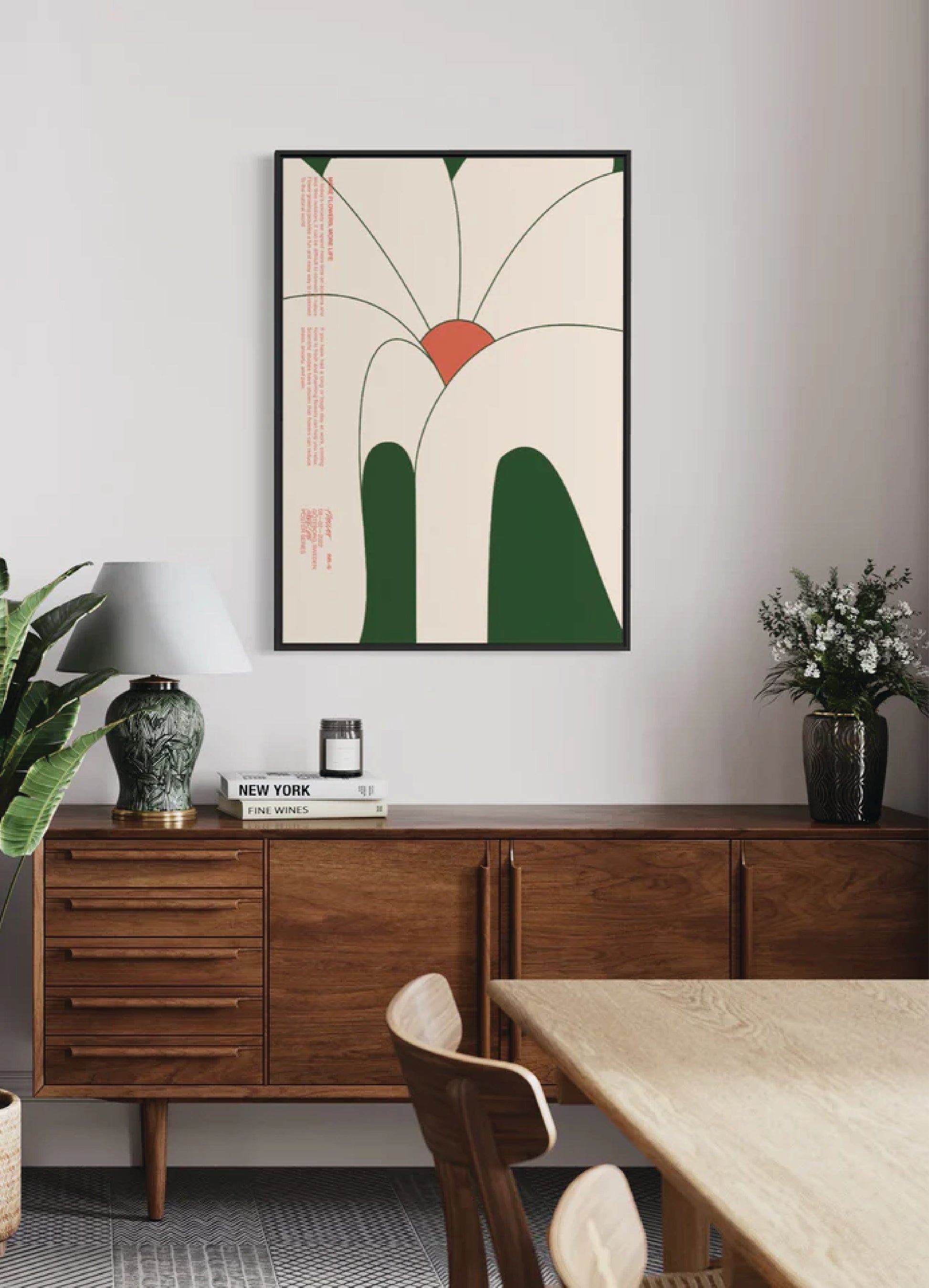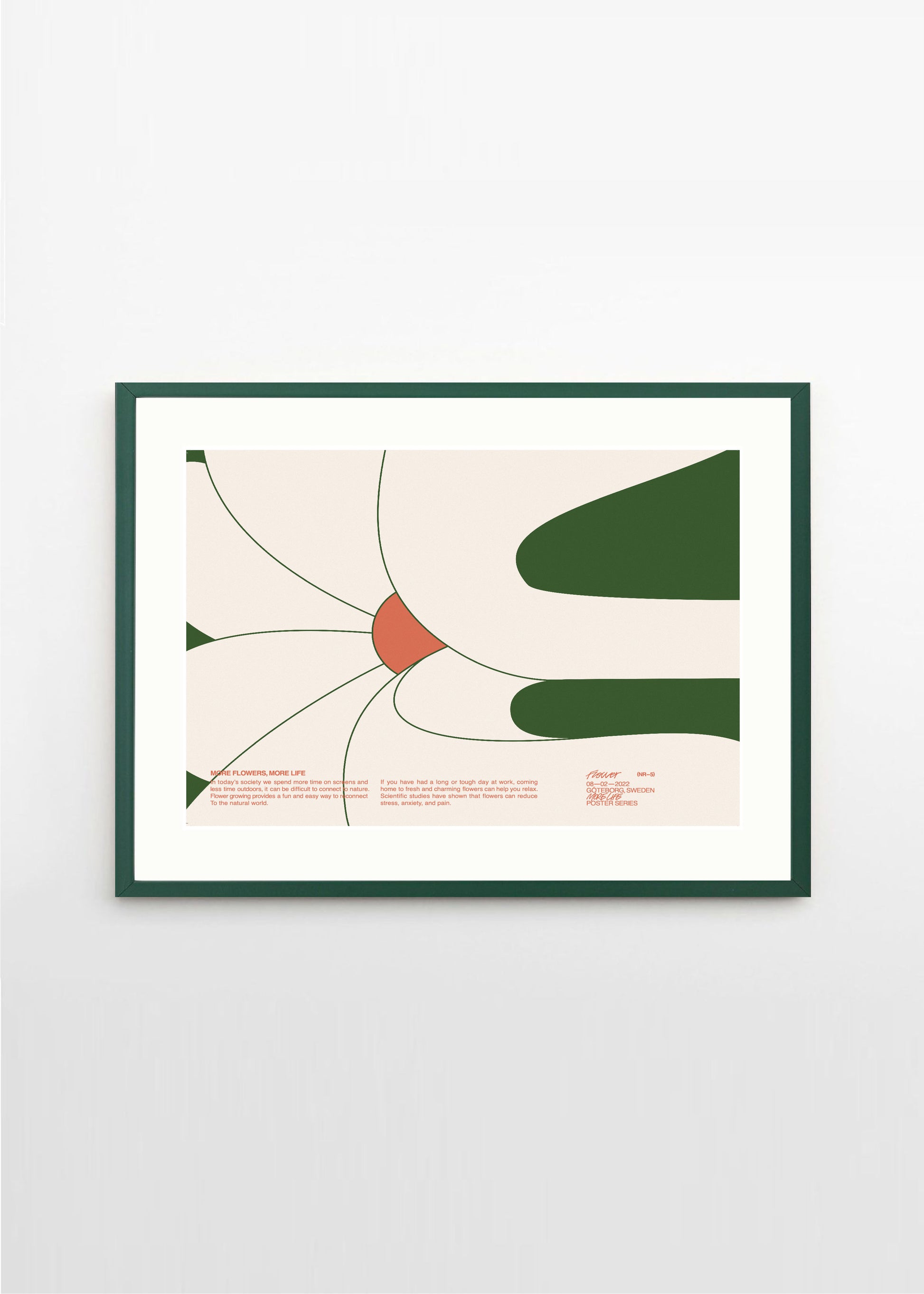 The artwork More Life 1 depicts a white and green flower in a landscape format. The white and green colors make More Life 1 perfect for a white, green or walnut colored frame, with or without passepartout.