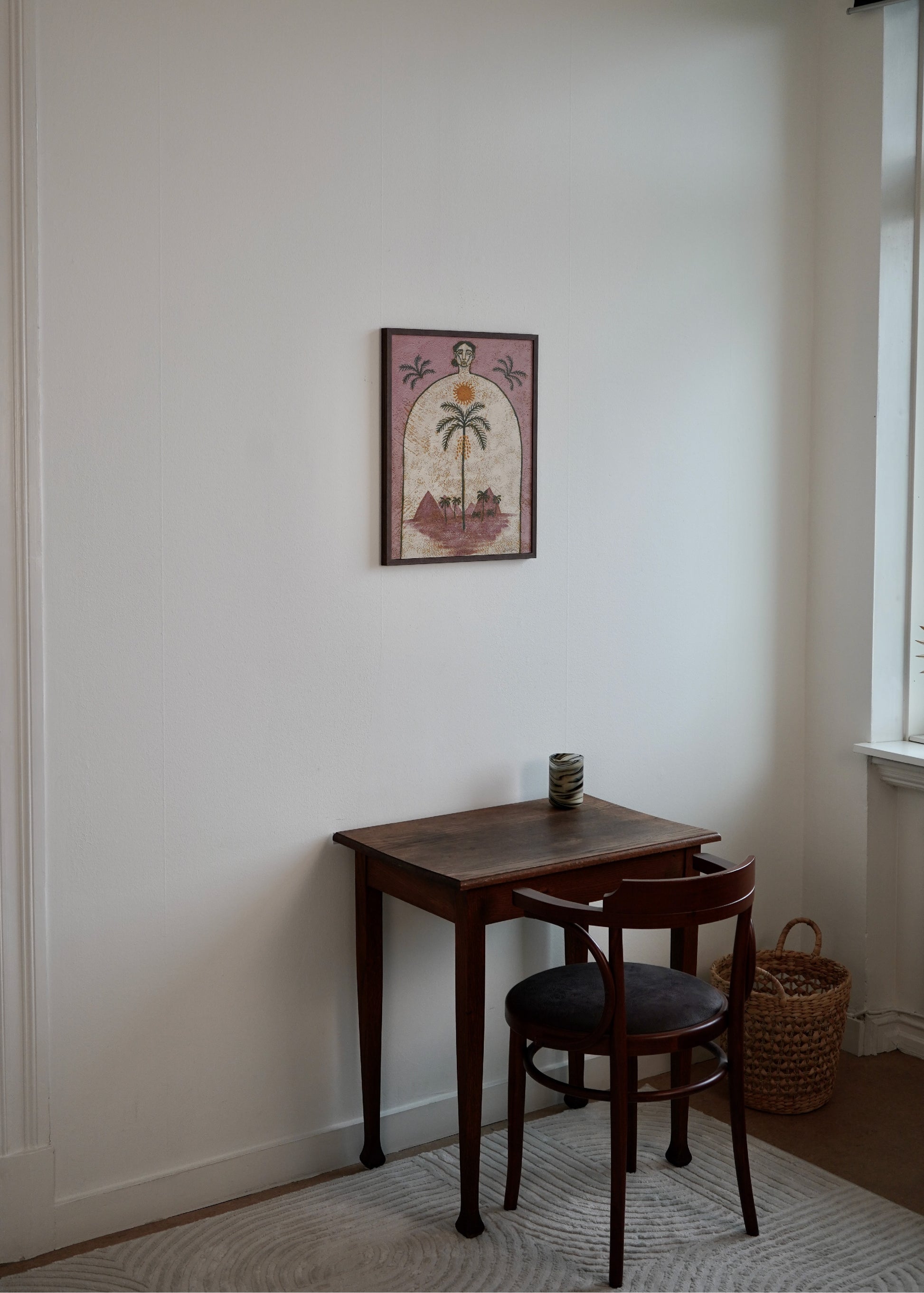 Julie Celina is an artist based in Denmark. Julie Celina’s art has been described as feeling feminine, ancient, and modern all at once. With her soft, muted color palettes and rich textures, her paintings create a calming atmosphere that encourages quiet introspection, blending nature and humanity effortlessly. Featuring botanical elements alongside serene, contemplative figures, her work invites viewers into a reflective and grounding space, serving as a reminder to slow down, breathe, and listen.