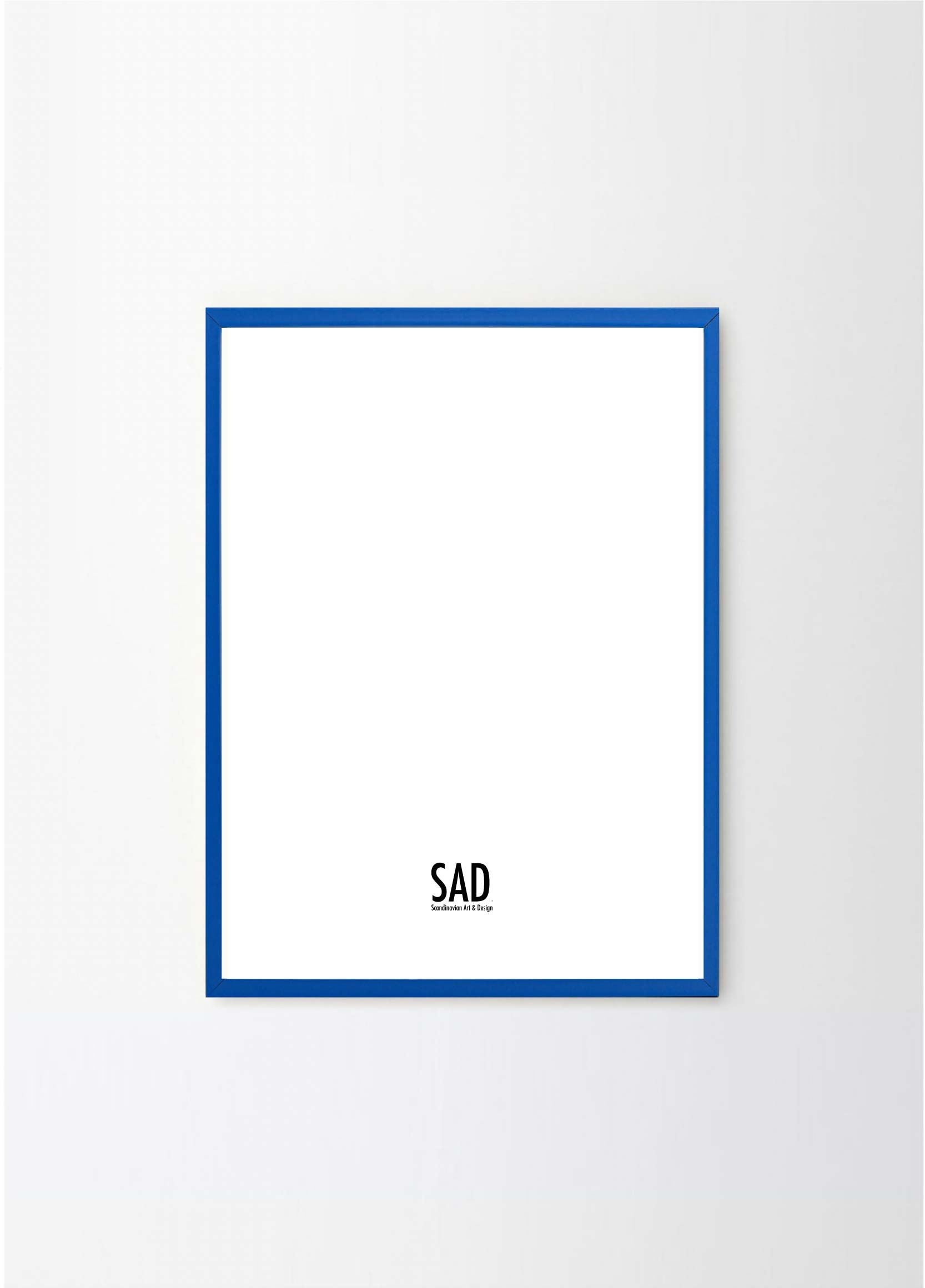 Blue wooden frame with plexiglass made of high-quality pine. Simple framing with clips on the back. Two metal hangers allow for both horizontal and vertical hanging. Protective plastic on plexiglass, to be removed before use.