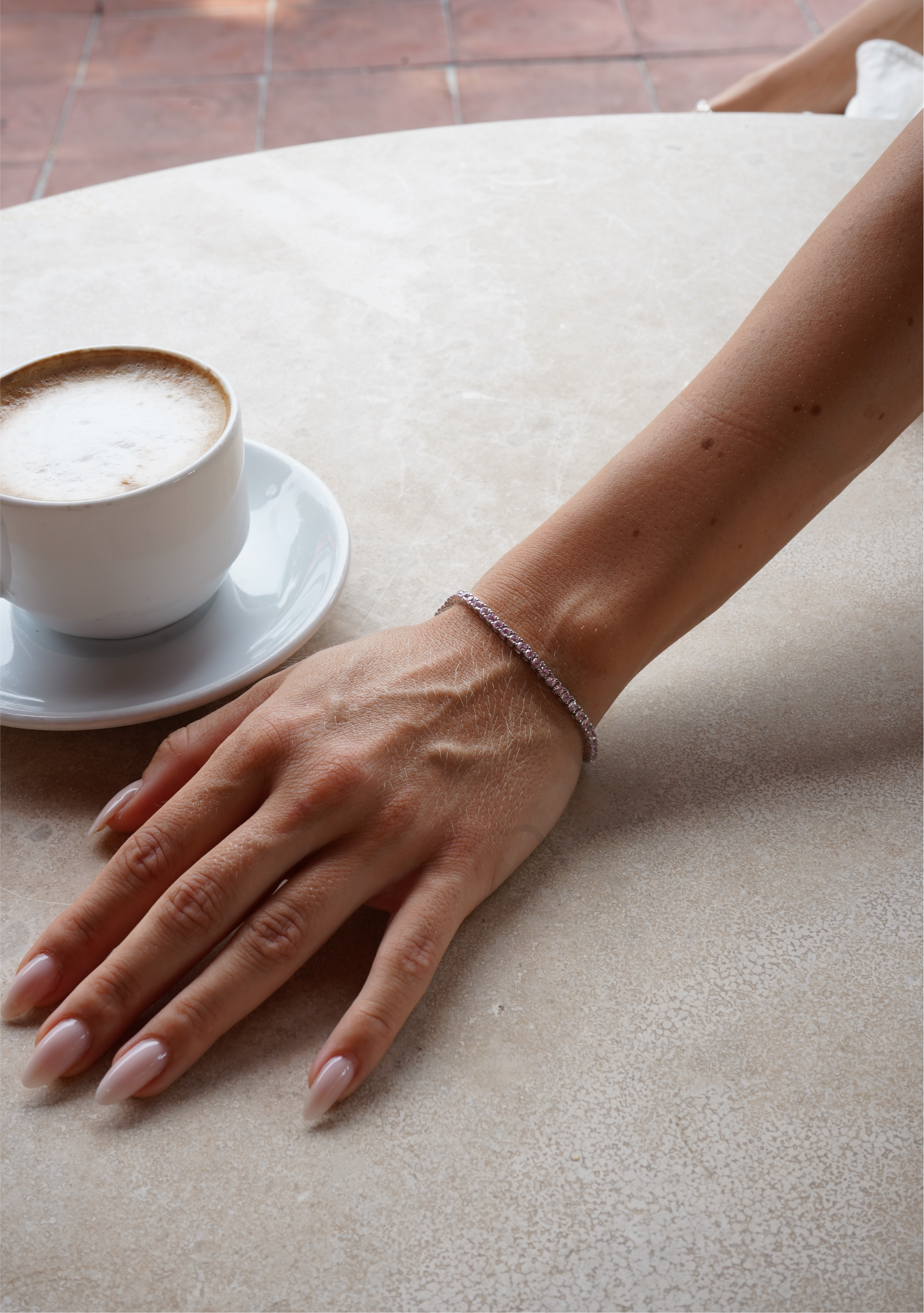 Our 2,5mm tennis bracelet is made in 100% sterling silver. It will last a lifetime if you treat it well. The bracelet is handcrafted with Pink AAA zirconia stones and a classical tennis lock. It's the perfect piece for women to make an extra statement.