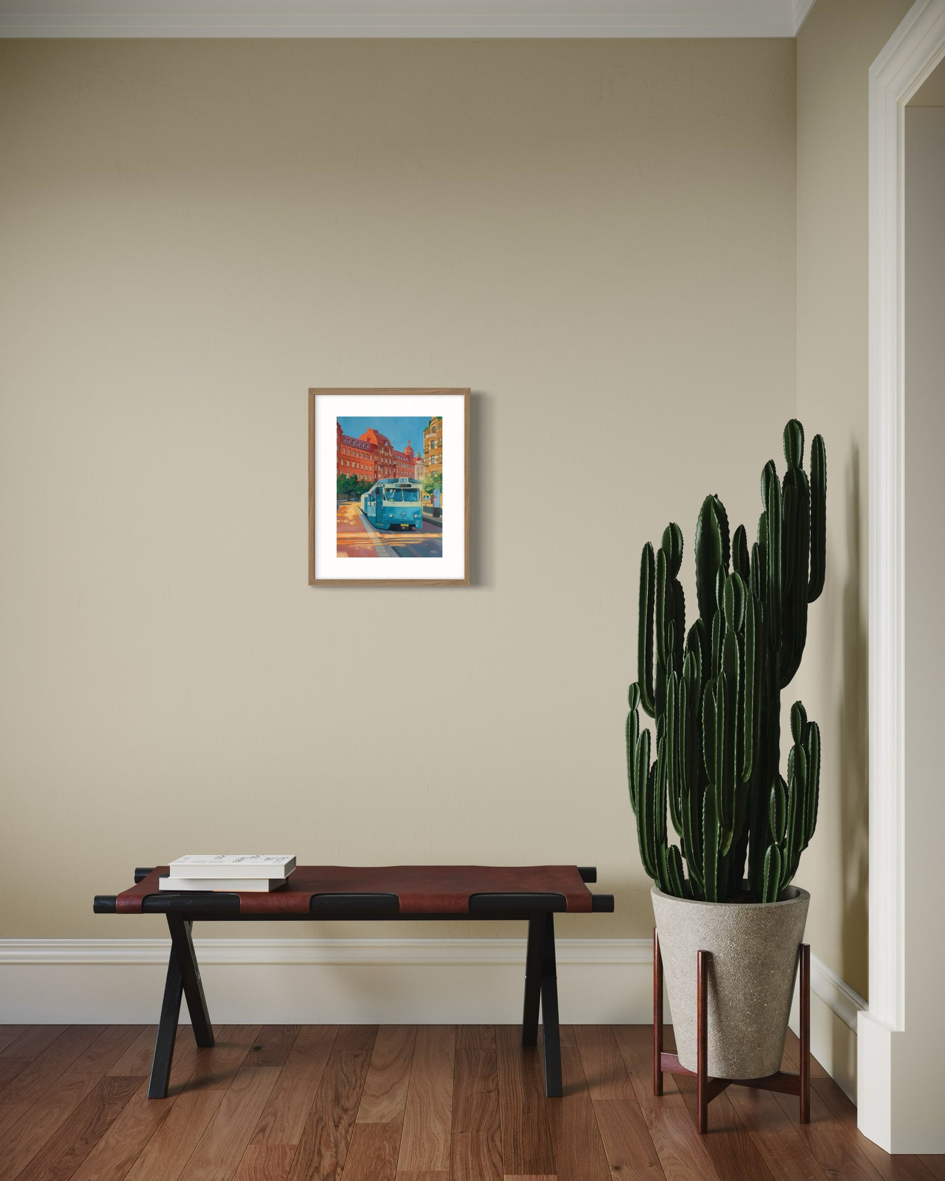 The trams, symbolic of the city's collective experience, foster a sense of community as they carry passengers from one destination to another. They become the backdrop for everyday stories and interactions. Her paintings serve as gentle reminders to cherish the connections we make and the places we inhabit. In her own quiet way, Elin encourages us to find beauty in the simplicity of everyday life.