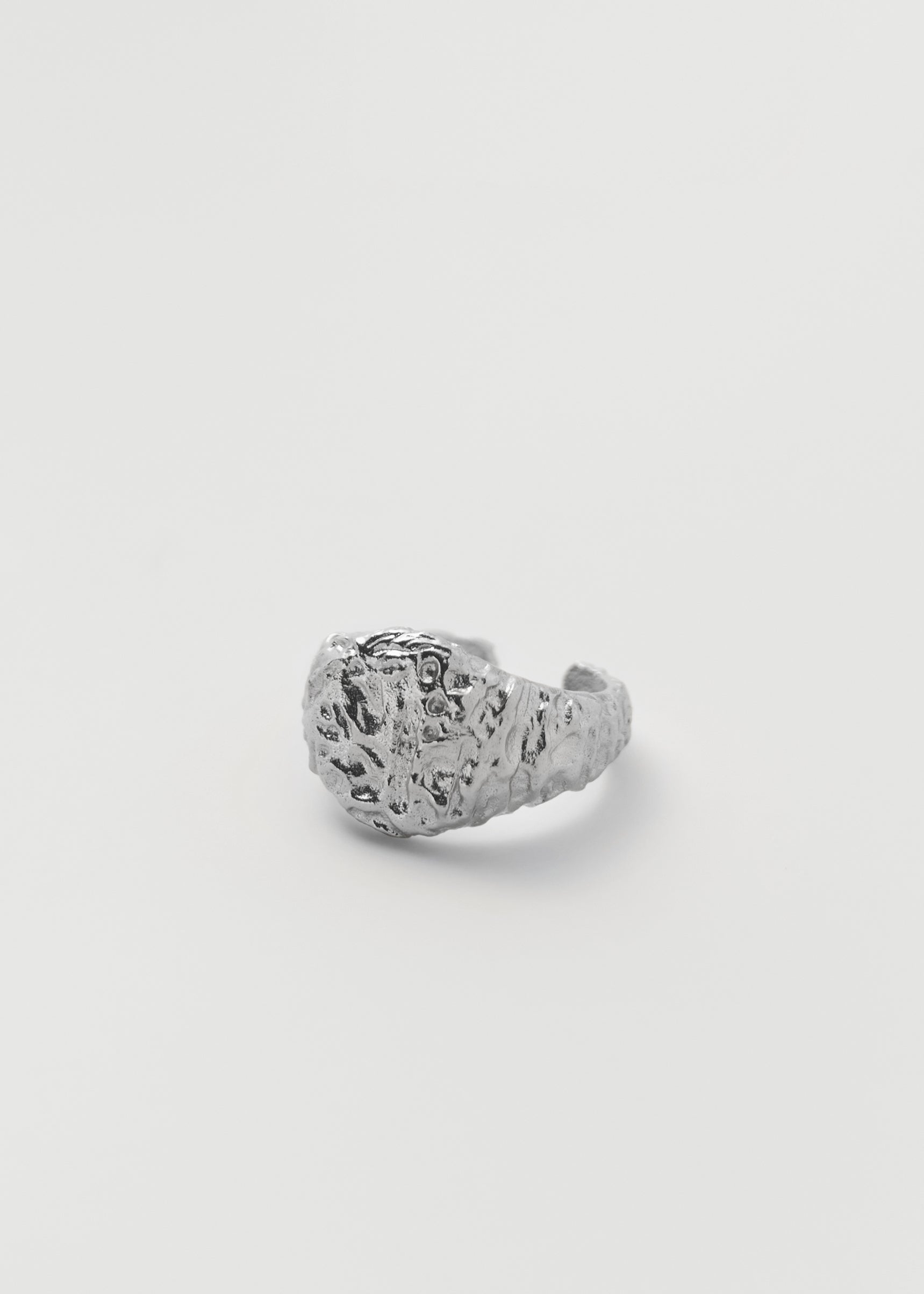 Our Shattered Button Ring is made in sterling silver. This beautiful and water resistant silver ring is adjustable and therefore one size.