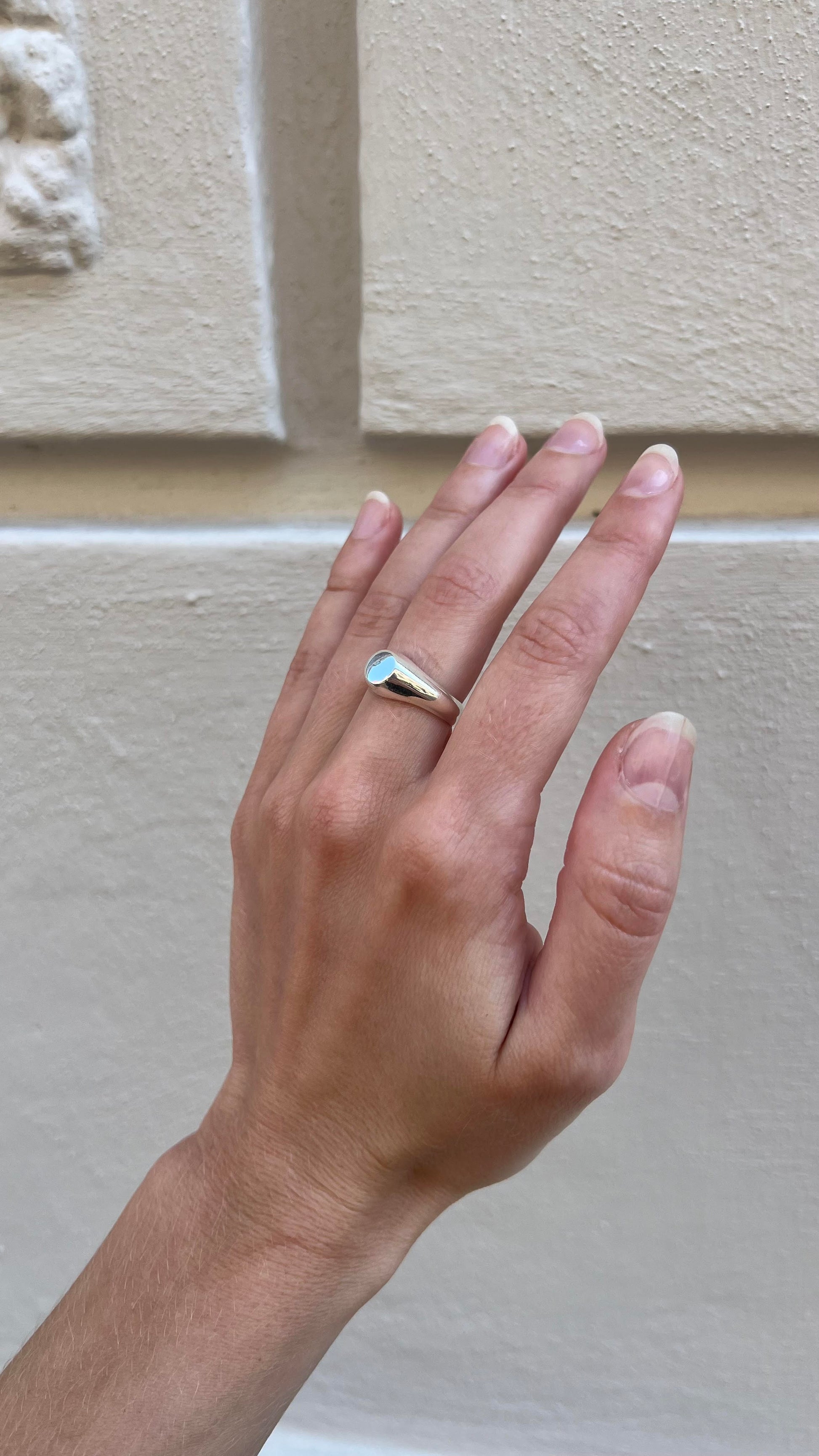 Silver Mini Signet Ring is made of 100% Sterling Silver with an agere coating to avoid the need to keep clean. Choose between 18k gold-plating or silver.