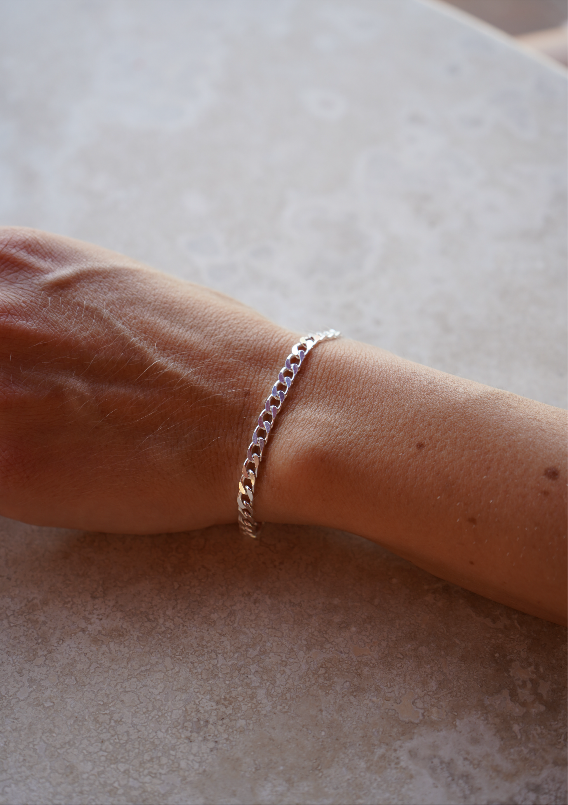 Our 4mm pansar bracelet is a classic chain and therefore perfect for both men and women. The bracelet is made of 925 sterling silver and measures 4mm in width.