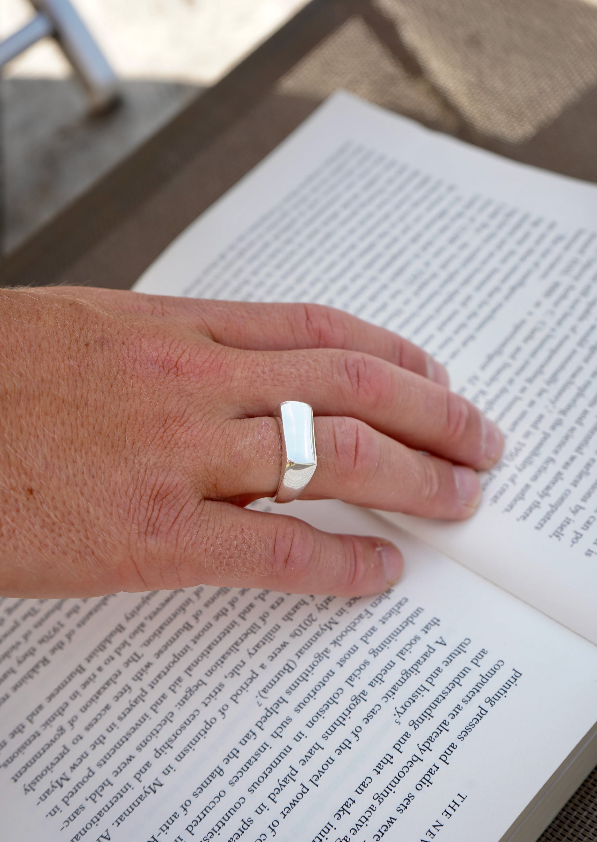 Silver Sleek Signet Ring is made of 100% Sterling Silver with an agere coating to avoid the need to keep clean. Choose between 18k gold-plating or silver.