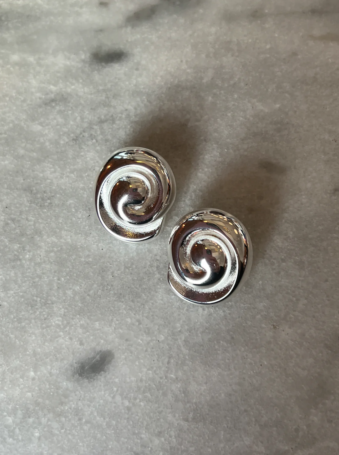 The Swirl Earrings Silver feature a bold spiral-inspired design that draws attention. Their shape makes them noticeable and easy to pair with a range of outfits, from casual to formal. The design allows them to be worn as a statement piece or combined with other jewelry for a coordinated style. Match them with our Swirl Necklace Silver for a complete look.