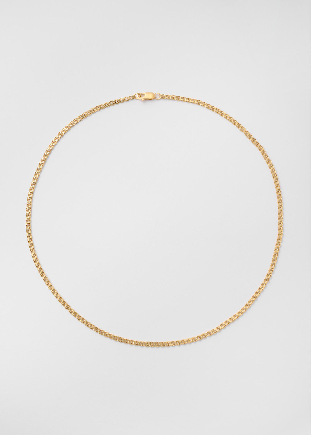 Our Gold Bismarck Necklace is timeless, unisex and unique. Women's size are usually around 43 cm and men's sizes are usually around 48 cm. This necklace is available in silver and similar styles here.