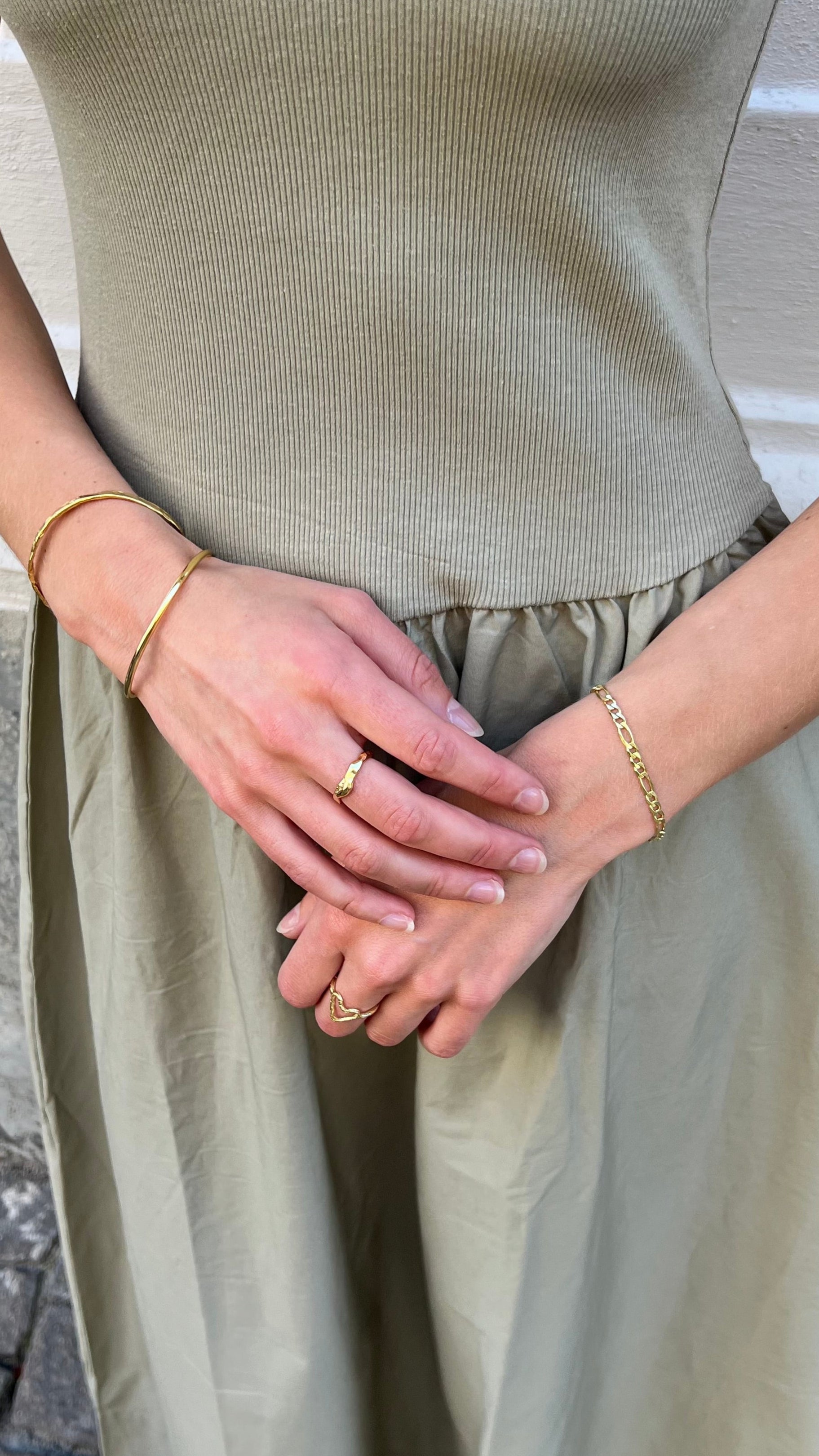 Our Thin Irregular Ring in Gold is made in sterling silver. This beautiful and water resistant silver ring is adjustable and therefore one size.