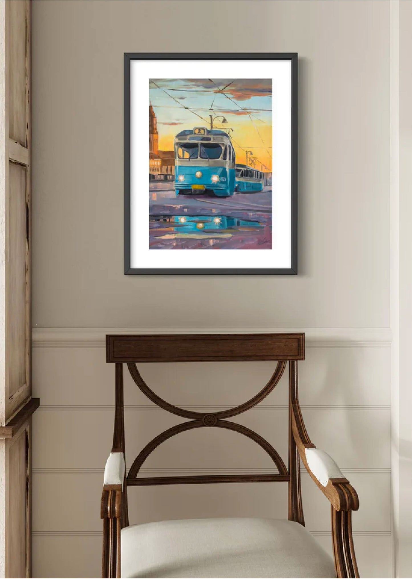 The trams, symbolic of the city's collective experience, foster a sense of community as they carry passengers from one destination to another. They become the backdrop for everyday stories and interactions. Her paintings serve as gentle reminders to cherish the connections we make and the places we inhabit. In her own quiet way, Elin encourages us to find beauty in the simplicity of everyday life.