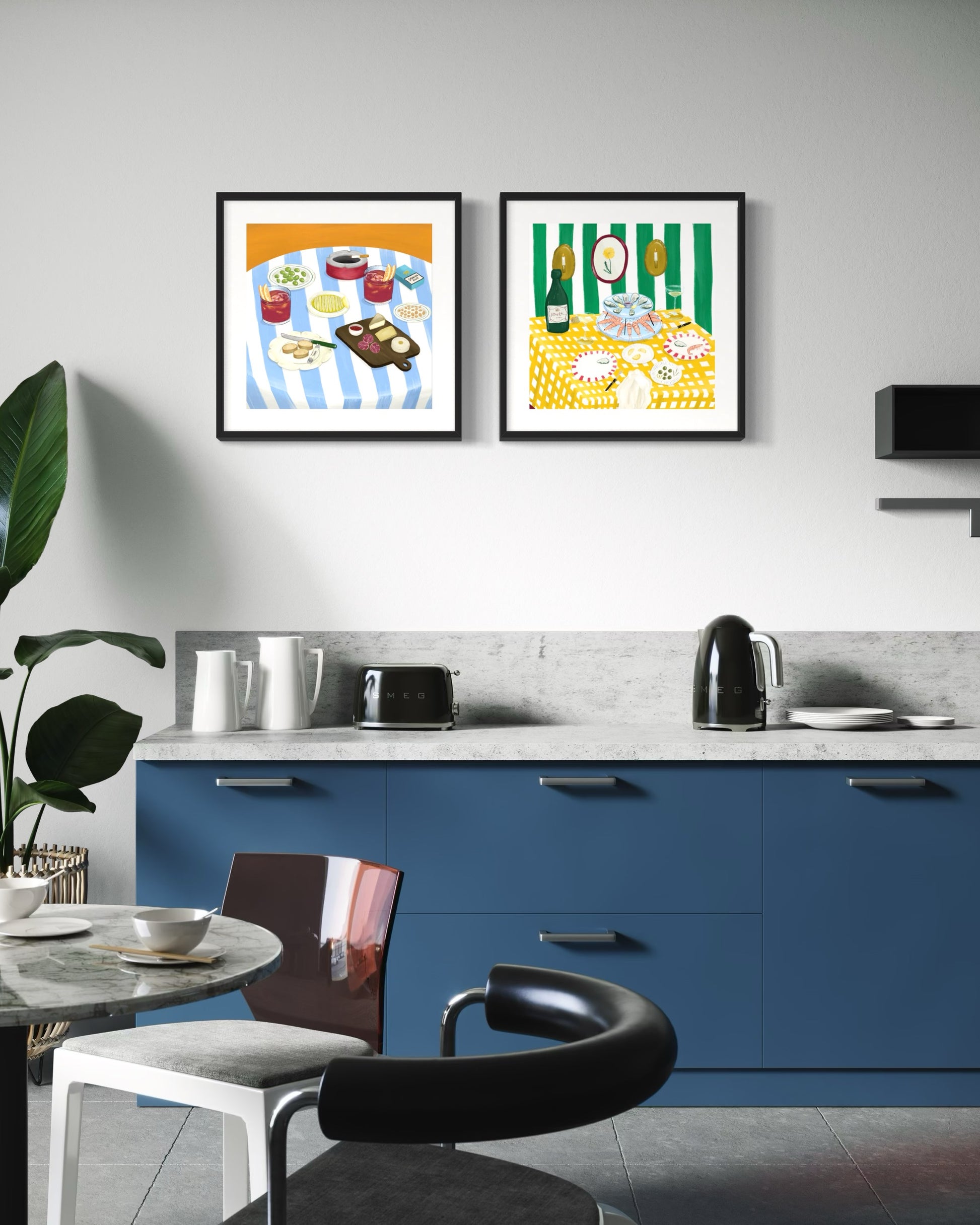 This mouthwatering table is both classy, cute and fun. With the classic green and yellow colors, it goes perfectly with a walnut frame.