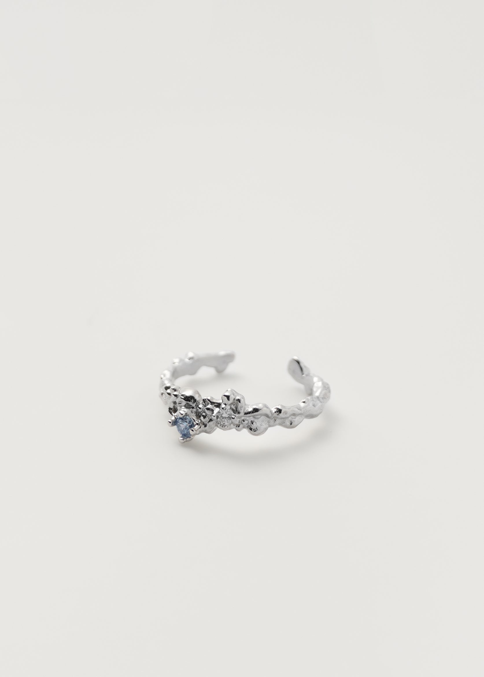Our Warped Blue Ring Silver is made in sterling silver. This beautiful and water resistant silver ring is adjustable and therefore one size.