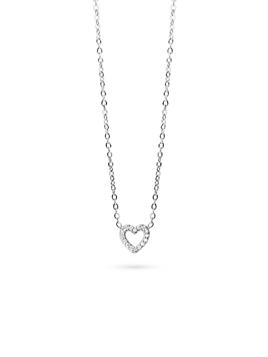Zirconia Heart Necklace features a heart-shaped pendant with white zirconia stones, offering a delicate yet versatile design. Lightweight and easy to style, it suits both everyday wear and special occasions.